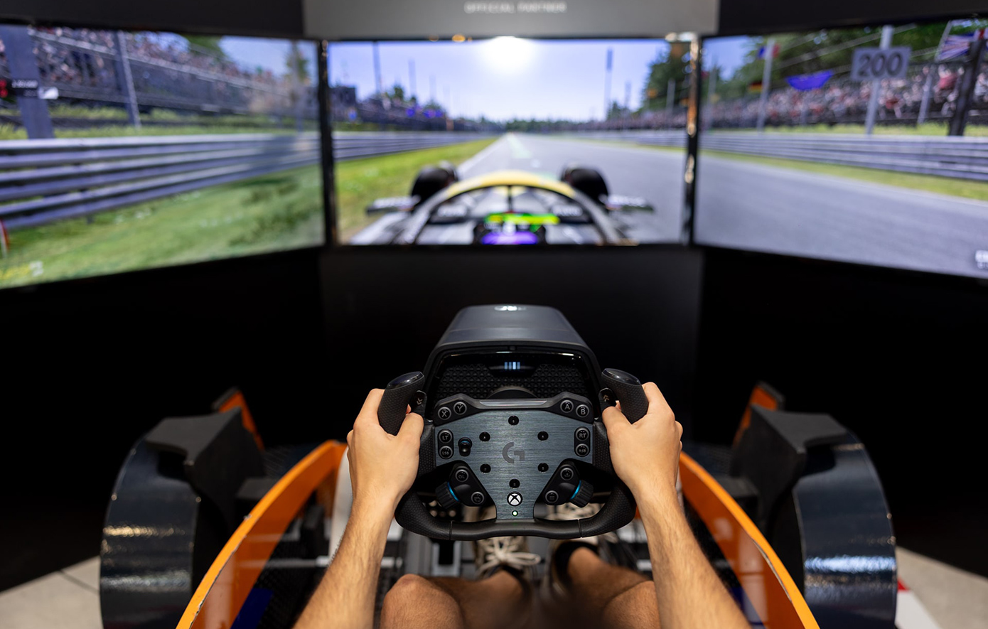 Με τρεις μεγάλες οθόνες και ήχο που θυμίζει κινητήρα αγωνιστικού αυτοκινήτου, ο προσομοιωτής μεταφέρει τους επισκέπτες σε όποια πίστα επιλέξουν για να ζήσουν μια αυθεντική εμπειρία Formula 1.