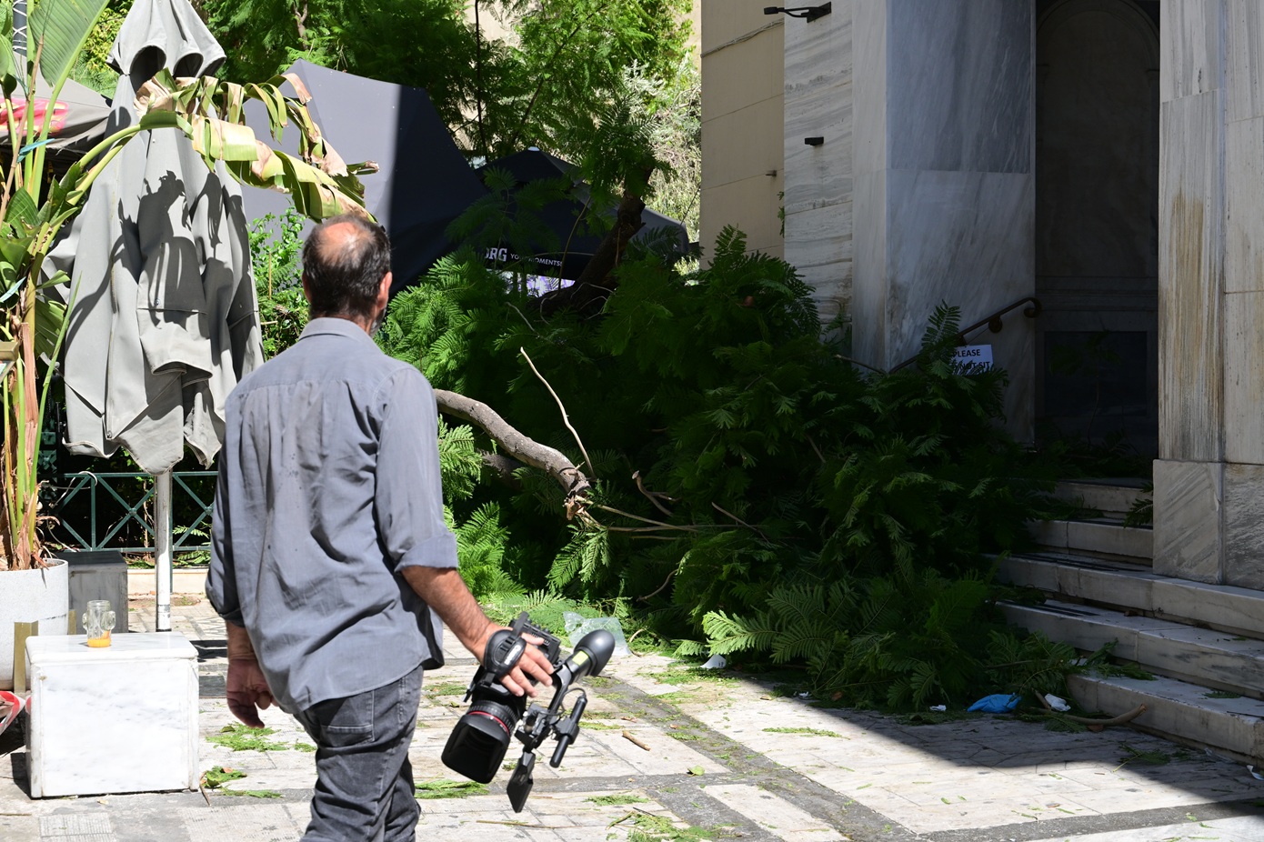 «Ο δήμος Αθηναίων ενημερώνει ότι, λόγω των καιρικών φαινομένων κατηγορίας 3 που πλήττουν την πόλη, με δυνατούς ανέμους και ριπές μεγάλης ταχύτητας, σημειώθηκε πτώση τριών δέντρων στην πλατεία της Αγίας Ειρήνης και στις οδούς Θεοτοκοπούλου και Κνωσού. Από το περιστατικό στην πλατεία Αγίας Ειρήνης καταγράφηκαν δύο τραυματισμοί πολιτών, ενώ στην οδό Θεοτοκοπούλου υπέστη ζημιές ένα όχημα.