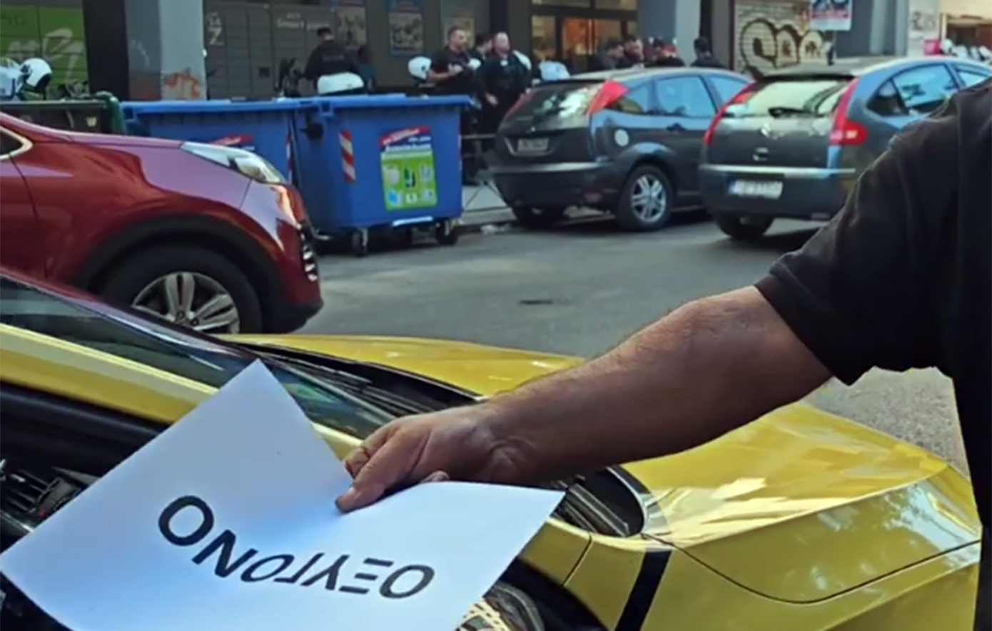 Κινητοποίηση αλληλεγγύης στον Πάνο Ρούτσι πραγματοποίησαν οδηγοί και ιδιοκτήτες ταξί, έπειτα από κάλεσμα του ΣΟΤΑ και του ΣΑΤΑ.