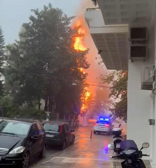 Η κακοκαιρία που έπληξε τη Ναύπακτο προκάλεσε προβλήματα σε πολλά σημεία της πόλης.Στην περιοχή Γρίμποβο, κεραυνός έπεσε σε ένα δέντρο, με αποτέλεσμα αυτό να τυλιχθεί στις φλόγες