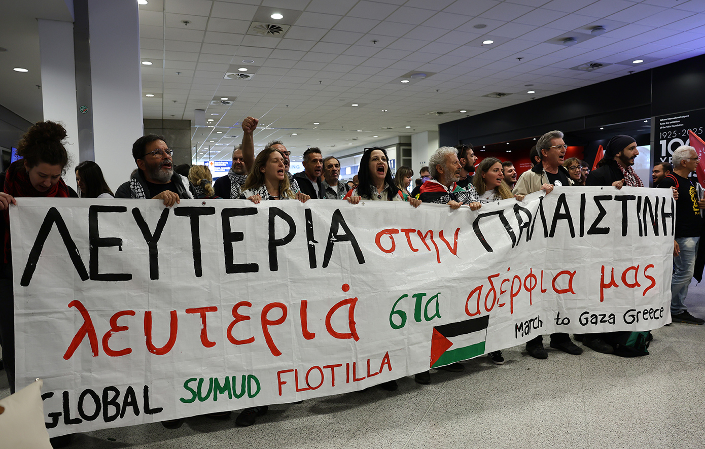 Στο αεροδρόμιο «Ελευθέριος Βενιζέλος» προσγειώθηκαν το απόγευμα της Δευτέρας οι 27 Έλληνες ακτιβιστές που συμμετείχαν στην αποστολή του Global Sumud Flotilla προς τη Γάζα, συνοδευόμενοι από άλλους διεθνείς συμμετέχοντες, ανάμεσά τους και η Γκρέτα Τούνμπεργκ.