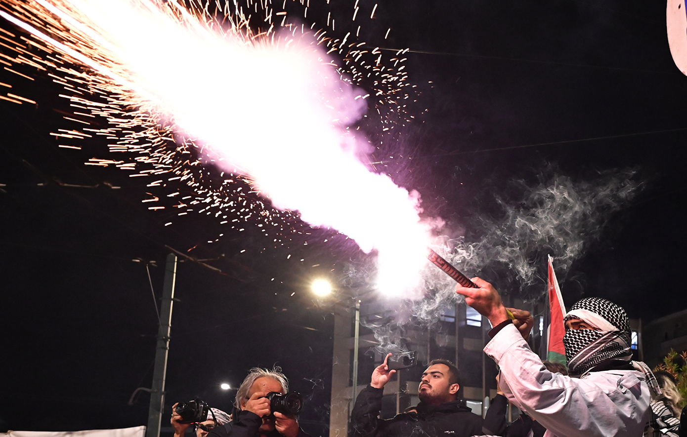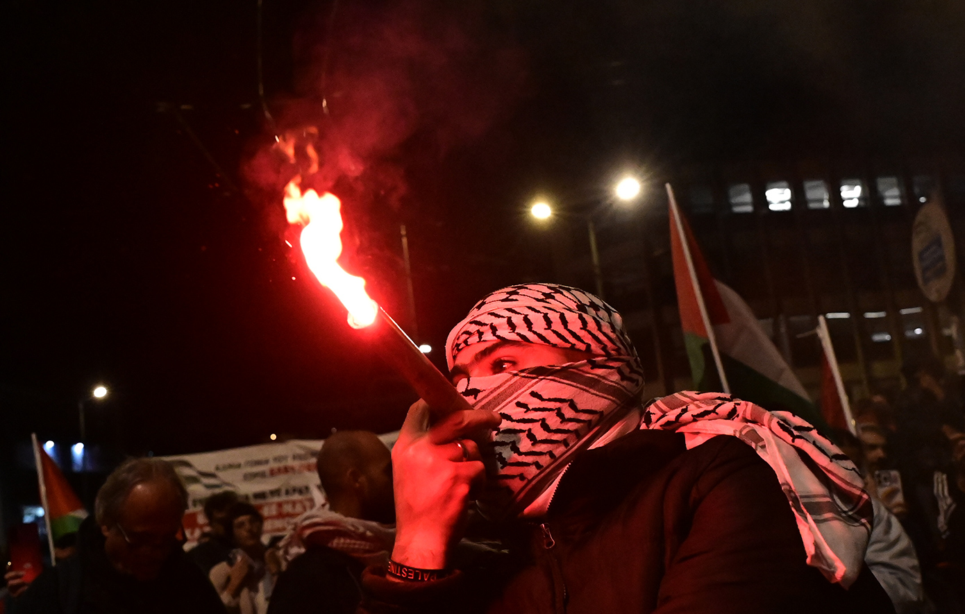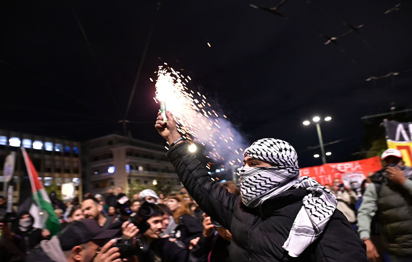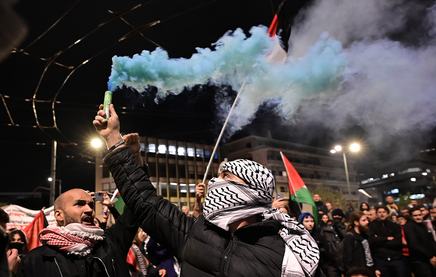 Επεισόδια σημειώθηκαν στη λεωφόρο Κηφισίας έξω από την ισραηλινή πρεσβεία κατά τη διάρκεια της πορείας αλληλεγγύης υπέρ της Παλαιστίνης.