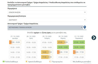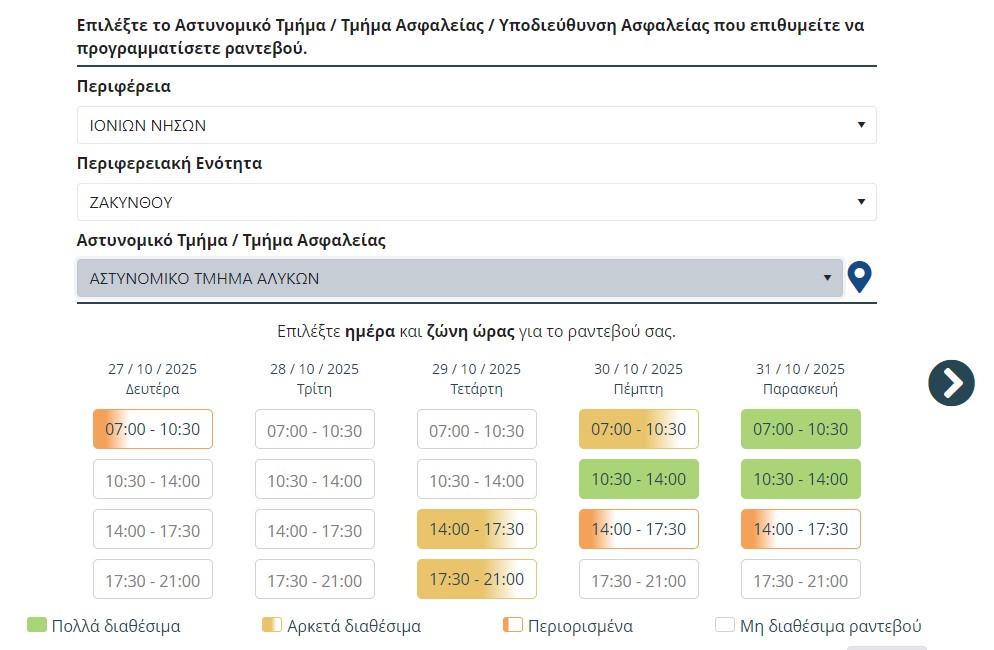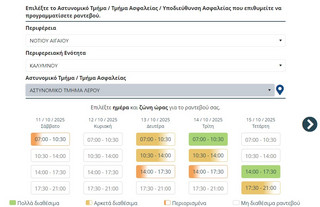 Αν κάποιος δοκιμάσει να κλείσει ραντεβού σε άλλες περιοχές, όπως η Ζάκυνθος ή η Κάλυμνος, βλέπει εντελώς διαφορετική εικόνα: