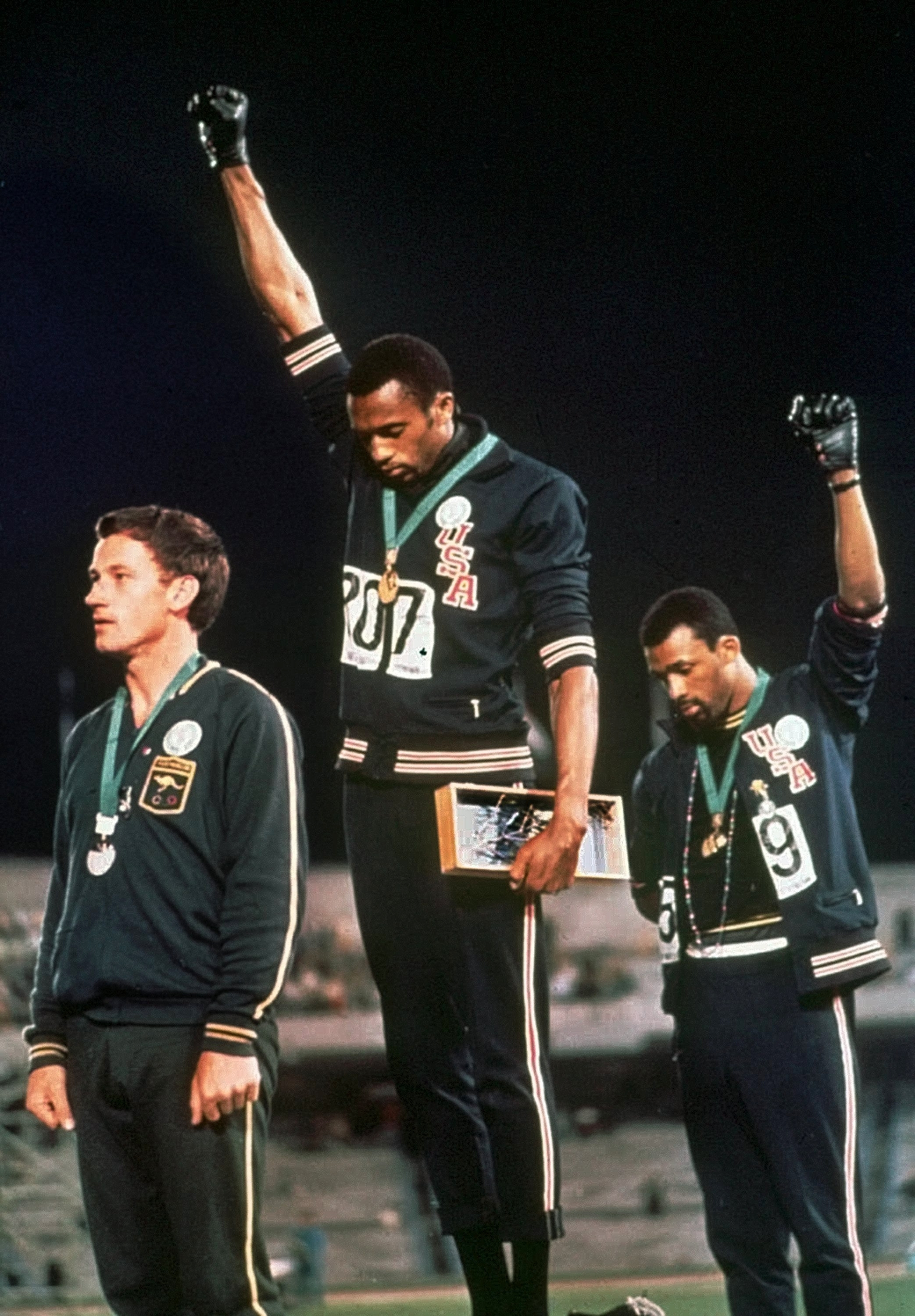 1968: Οι Αμερικανοί αθλητές Τόμι Σμιθ και Τζον Κάρλος υψώνουν τη γροθιά τους σε ένδειξη «Black Power» κατά τη βράβευσή τους στους Ολυμπιακούς Αγώνες του Μεξικού, σε μια ιστορική πράξη διαμαρτυρίας για τα πολιτικά δικαιώματα.