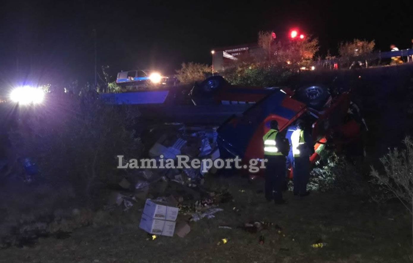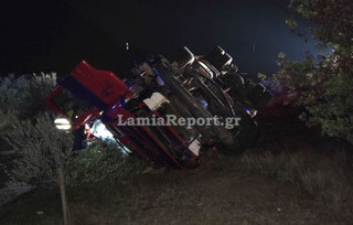 Ο οδηγός μεταφέρθηκε τραυματισμένος στο νοσοκομείο Λαμίας, χωρίς η ζωή του να διατρέχει κίνδυνο.
