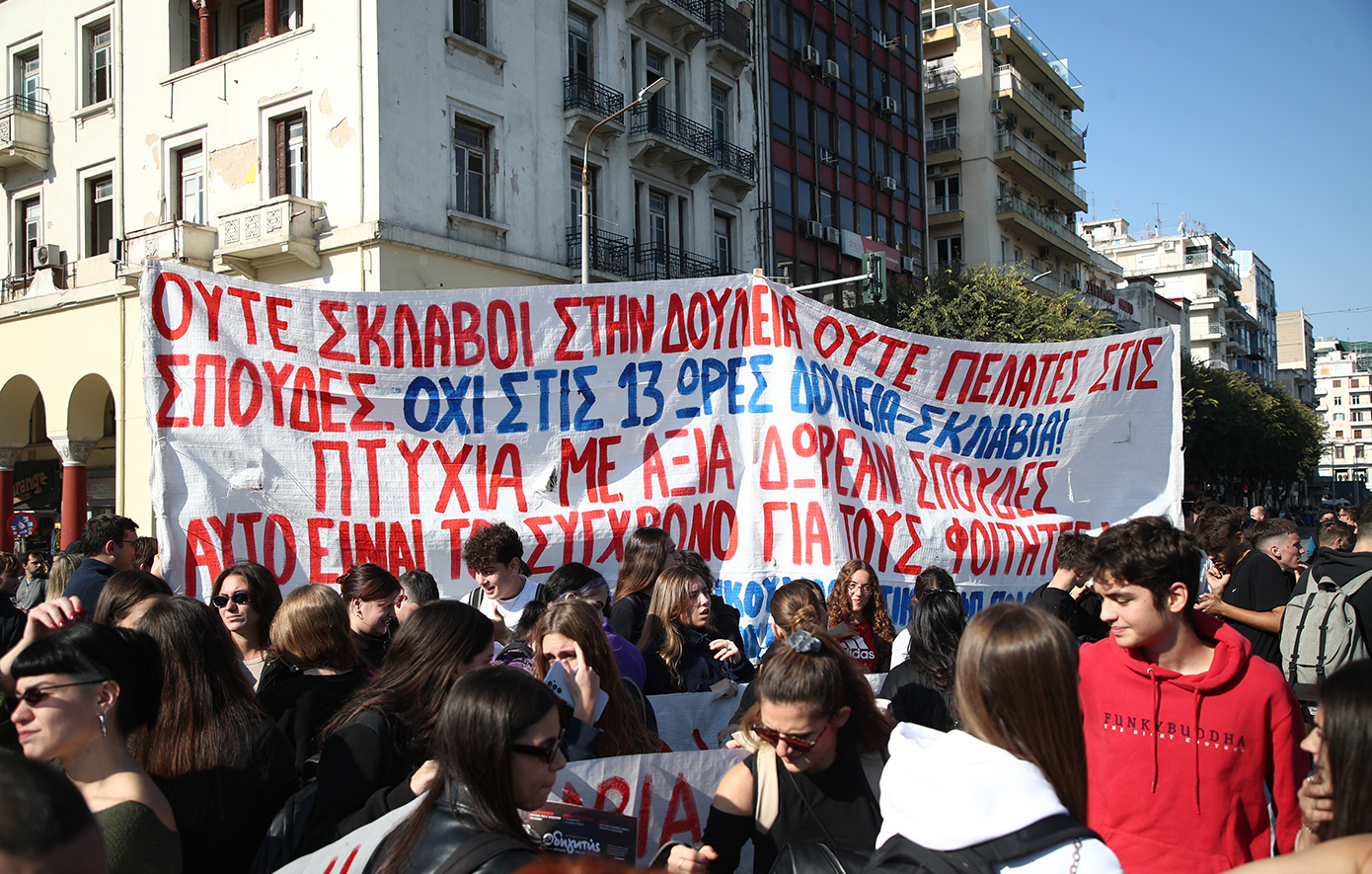 «Γιατί το παρόν και το μέλλον των εργαζομένων δεν είναι η 13ωρη σκλαβιά, αλλά είναι το 7ωρο-πενθήμερο-35ωρο, είναι οι Συλλογικές Συμβάσεις Εργασίας, οι αξιοπρεπείς μισθοί, τα μέτρα υγιεινής και ασφάλειας στους τόπους δουλειάς, οι κοινωνικές παροχές, τα πλήρη δικαιώματά τους, για μια ζωή που πραγματικά τους αξίζει».