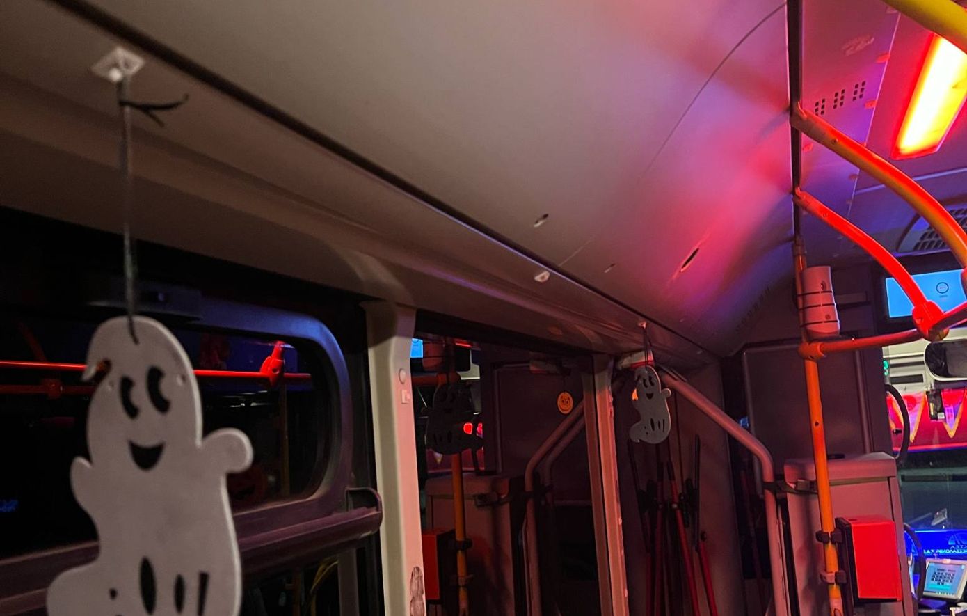 Ο Μάνος Κατσίκας, γνωστός για τις ευφάνταστες μεταμορφώσεις του λεωφορείου του, κατάφερε και φέτος να τραβήξει τα βλέμματα. Οι επιβάτες της γραμμής 57, μπαίνοντας στο όχημα, έρχονται αντιμέτωποι με μια… άλλη διάσταση, όπου το καθημερινό δρομολόγιο αποκτά χρώμα, χιούμορ και μια καλή δόση φαντασίας –όλα μέσα στο πνεύμα του Halloween.