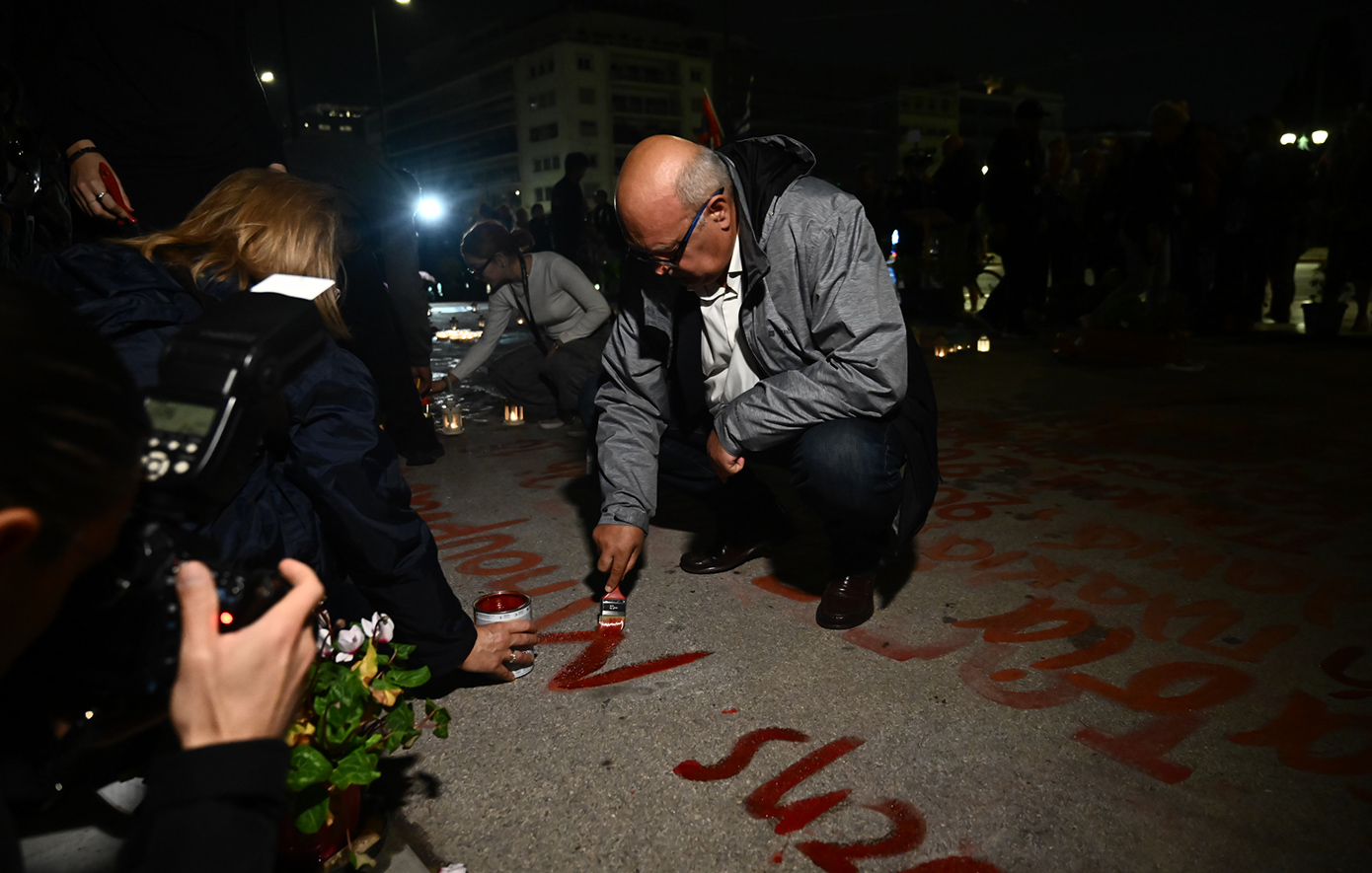 Λεπτά μετά την ολοκλήρωση της δράσης γραφής των ονομάτων των θυμάτων της τραγωδίας των Τεμπών στο Σύνταγμα, ο πατέρας του Ντένις, Πάνος Ρούτσι, και ο πατέρας της Αναστασίας, Ηλίας Παπαγγελής, προχώρησαν σε δηλώσεις.