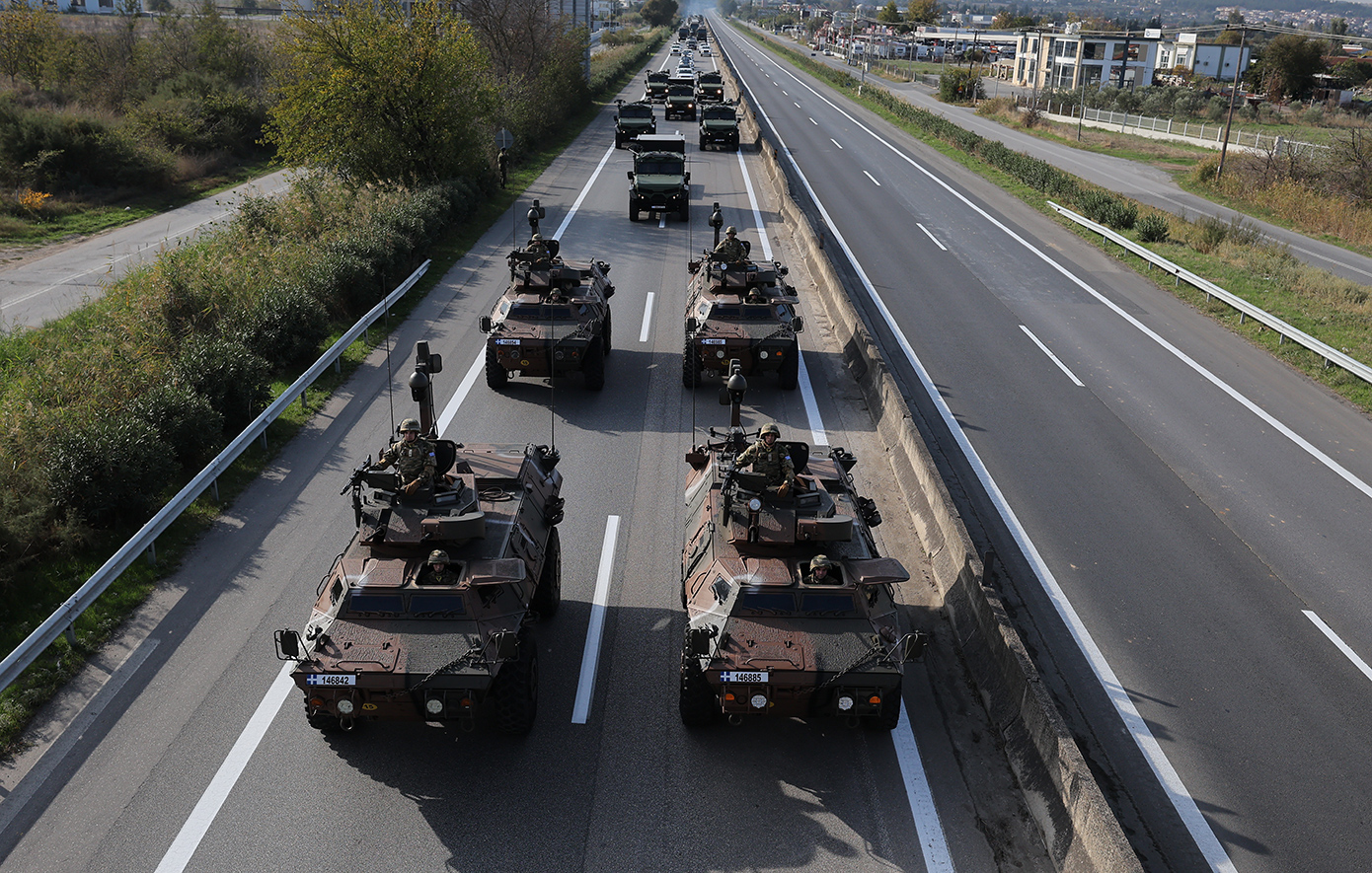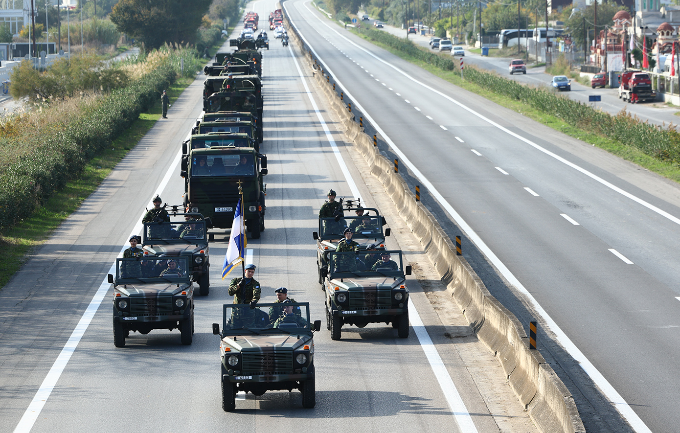 Σε εξέλιξη βρίσκεται η δοκιμαστική παρέλαση των μηχανοκίνητων τμημάτων των Ενόπλων Δυνάμεων και των Σωμάτων Ασφαλείας, ενόψει της μεγάλης στρατιωτικής παρέλασης που θα λάβει χώρα στη Θεσσαλονίκη για τον εορτασμό της Εθνικής Επετείου της 28ης Οκτωβρίου.