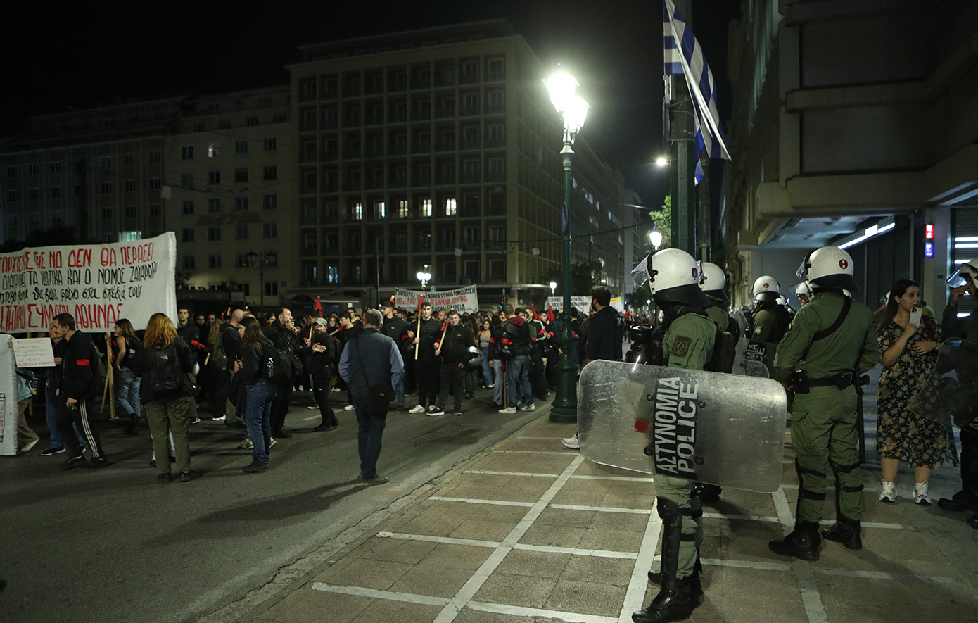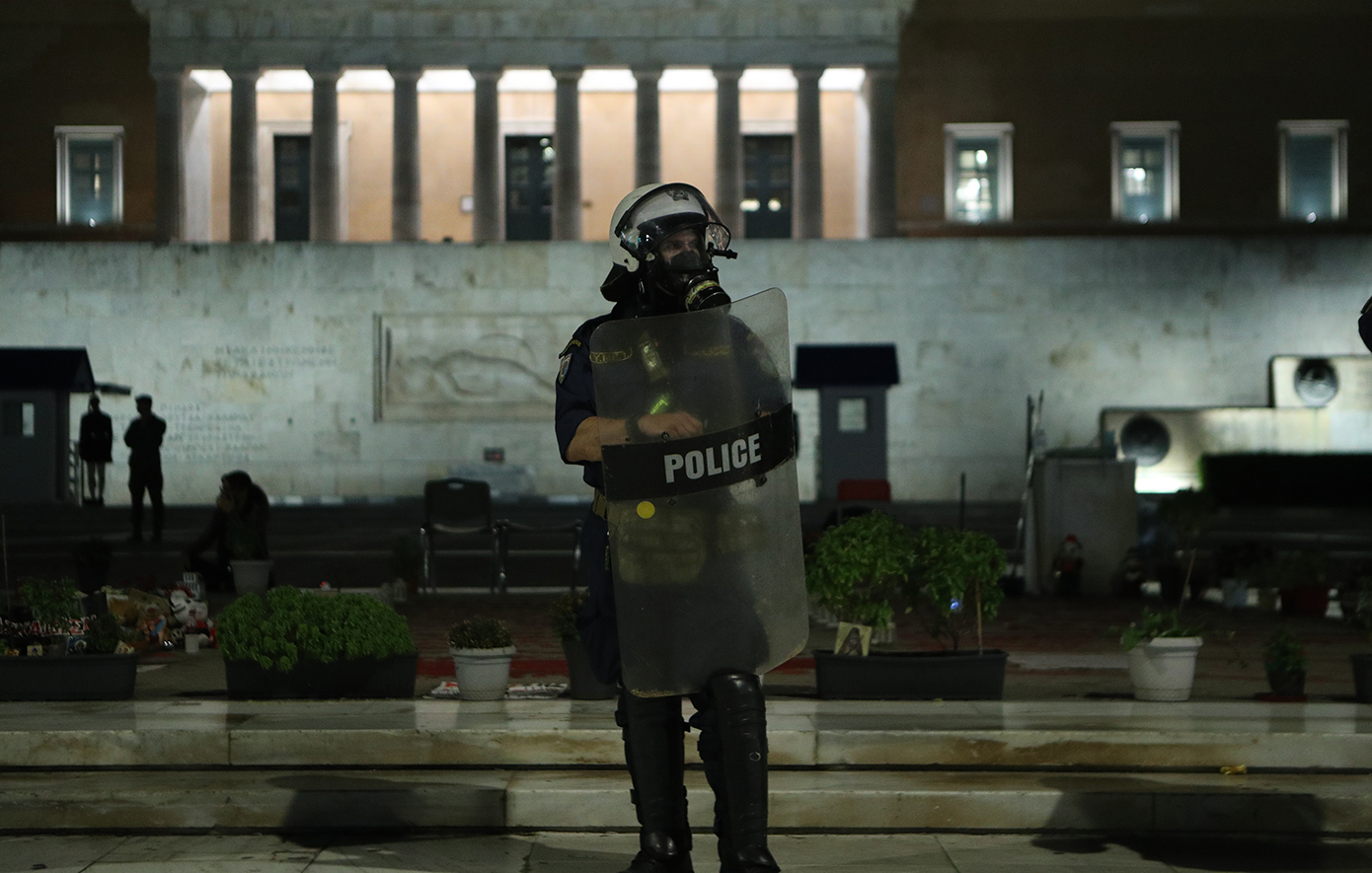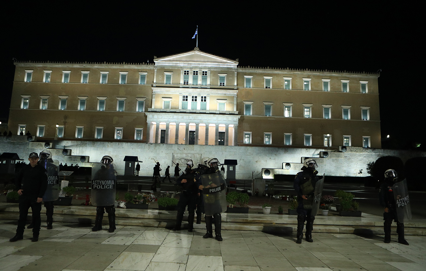 Οι αστυνομικοί έλαβαν θέσεις περιμετρικά του μνημείου λίγο πριν τις 20:00, καθώς στο Σύνταγμα κατέληξε πορεία συλλογικοτήτων. Σύμφωνα με τη νομοθετική ρύθμιση που εγκρίθηκε χθες, την ευθύνη για τη διασφάλιση της τάξης και την προστασία του Μνημείου έχει πλέον το υπουργείο Προστασίας του Πολίτη.