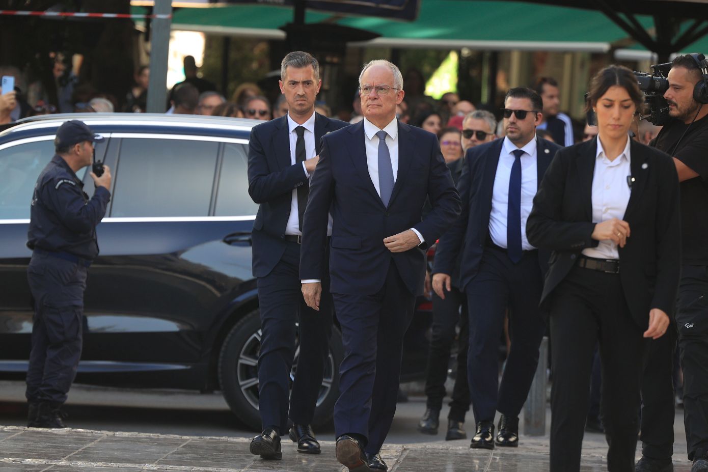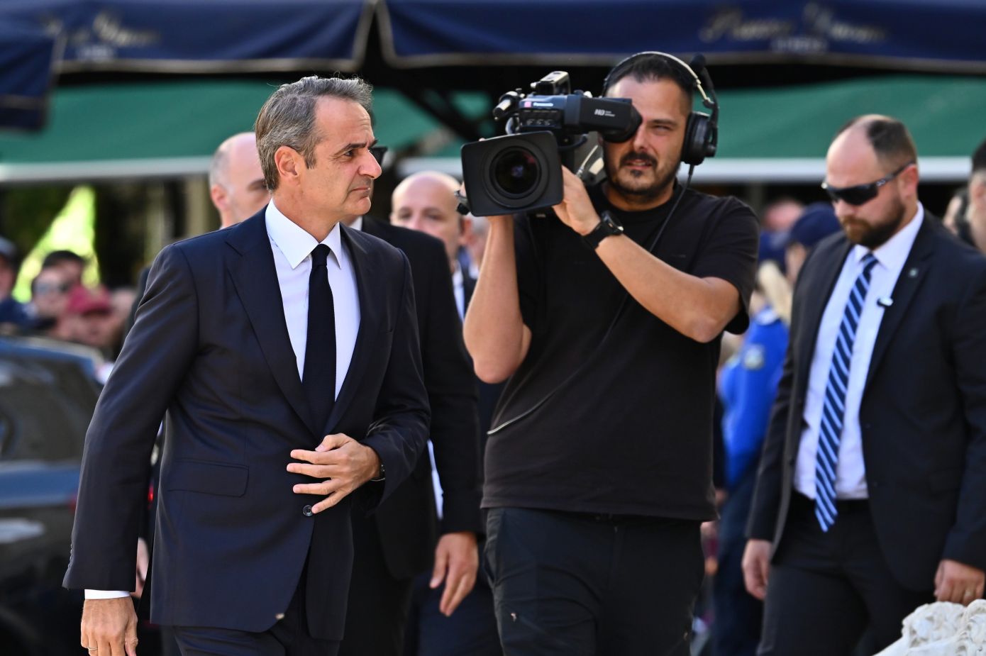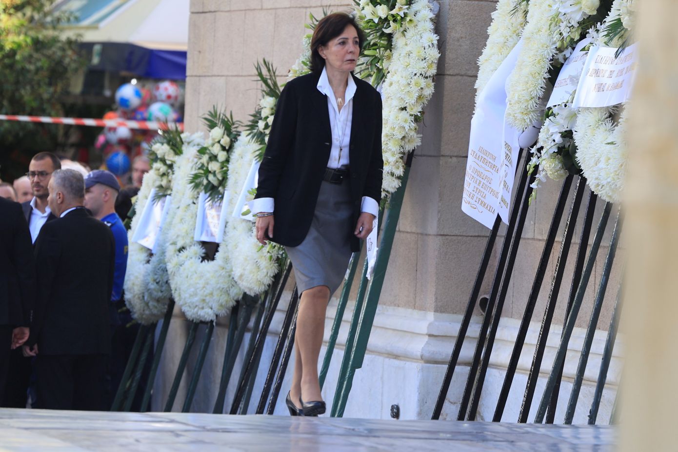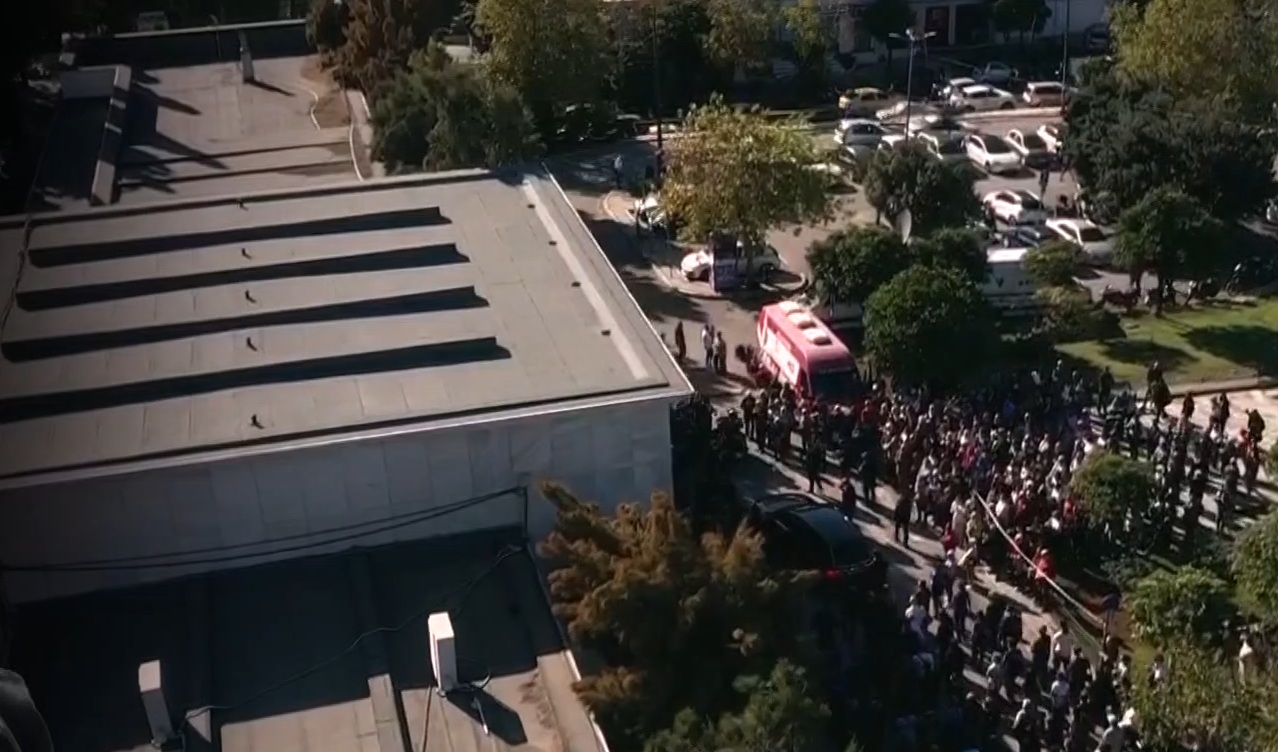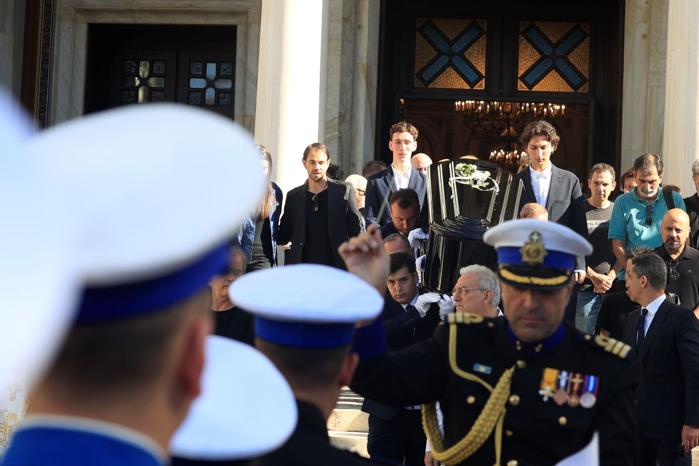Στον περίβολο της Μητρόπολης έφτασε η μπάντα του Πολεμικού Ναυτικού που παίζει πένθιμους σκοπούς.