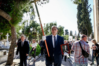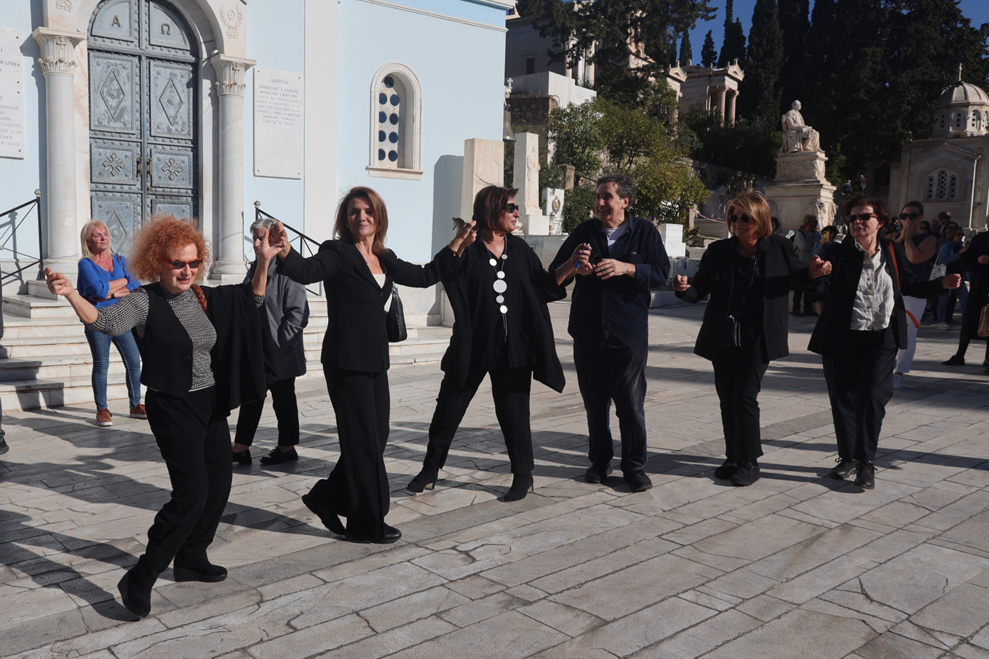 Με το τραγούδι «Ας κρατήσουν οι χοροί» αποχαιρετά τον Διονύση Σαββόπουλο η φιλαρμονική του δήμου Αθηναίων, λίγο πριν την ταφή του καλλιτέχνη.