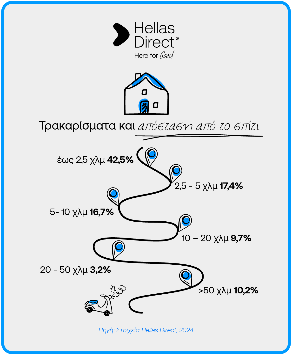 Για τις μηχανές, τα ποσοστά είναι ακόμη υψηλότερα – 42,5% έως τα 2,5 χλμ και 17,4% έως τα 5 χλμ. απόσταση από το σπίτι.