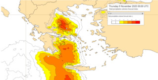 Πιο συγκεκριμένα, στις Σποράδες, την Ανατολική Θεσσαλία (κυρίως την Μαγνησία και το Πήλιο) αναμένονται τα μεγαλύτερα ύψη βροχής, με τις μέγιστες τιμές να φτάνουν τα 80-150 mm σε ένα διάστημα 48 έως 60 ωρών. Σε αυτές τις περιοχές, η αθροιστική βροχόπτωση του διημέρου προβλέπεται να ξεπεράσει κατά πολύ τα 100 mm.