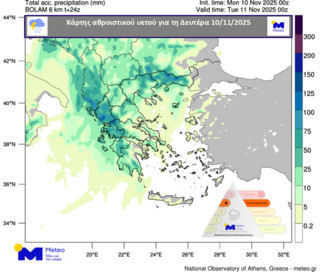 Τα γενικά χαρακτηριστικά του καιρού για σήμερα, Δευτέρα 10/11