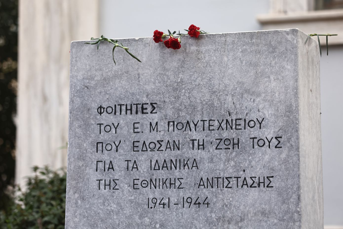 Οι πόρτες του ιστορικού συγκροτήματος του ΕΜΠ στην Πατησίων ήταν ανοιχτές από τις 07:00 το πρωί και παρέμειναν έως το μεσημέρι. Νωρίς το πρωί της Δευτέρας κατέθεσαν στεφάνι ο Πρόεδρος της Δημοκρατίας, Κωνσταντίνος Τασούλας, και ο πρόεδρος της Βουλής, Νικήτας Κακλαμάνης.