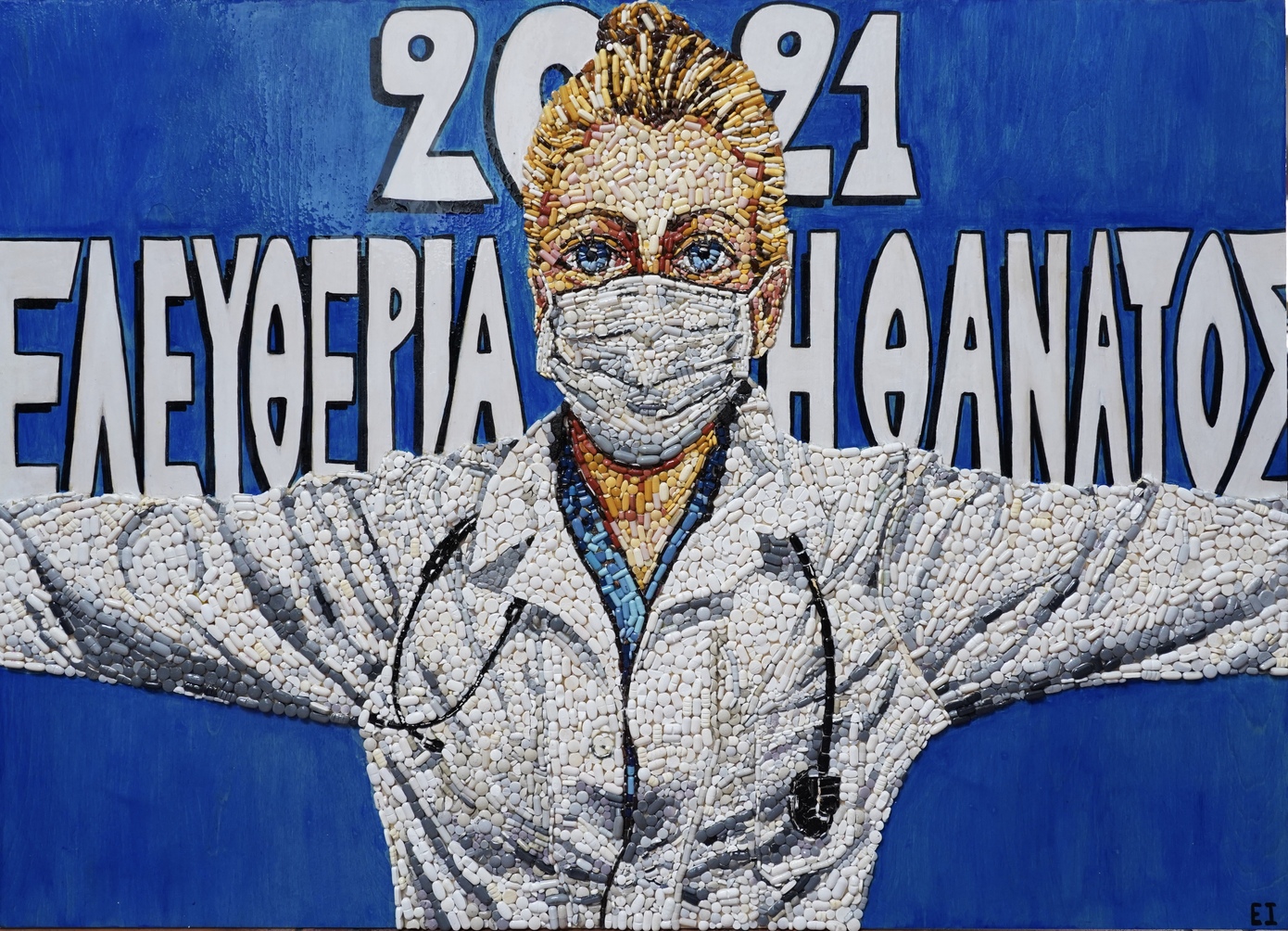Η φαντασία δεν έχει όρια, όπως και η ανάγκη του ανθρώπου για έκφραση μέσω του Πολιτισμού. Η Ελένη Ιωαννίδου είναι λοιμωξιολόγος και ζει στο πανέμορφο Ρέθυμνο στην Κρήτη. Δημιουργεί ψηφιδωτούς πίνακες χρησιμοποιώντας ληγμένες κάψουλες και φάρμακα.