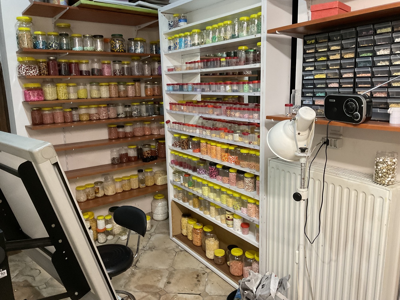 Είναι απίστευτο το πόσα χρώματα και σχήματα υπάρχουν. Επίσης το πόσες διαβαθμίσεις στη «γυαλάδα» ανάλογα με το πόσο πορώδες είναι το κάθε χάπι και πόσο απορροφά την υγρασία. Πολλά χάπια αλλάζουν χρώμα κατά τη διάρκεια της ζωής τους και αυτό έχει ένα ξεχωριστό ενδιαφέρον γιατί μπορείς να δεις ένα έργο να «εξελίσσεται», να έχει τη δική του δυναμική. Εννοείται ότι τα σκούρα χάπια είναι πιο δυσεύρετα, για εμπορικούς σκοπούς φαντάζομαι. Ο ασθενής προτιμάει να πάρει ένα ροζ ή ένα γαλάζιο χάπι παρά ένα «δυσοίωνο» μαύρο. Όταν χρειάζομαι σκούρα χρώματα αναγκαστικά χρωματίζω κάποια και έτσι δεν έχουν το φυσικό/χημικό τους χρώμα.