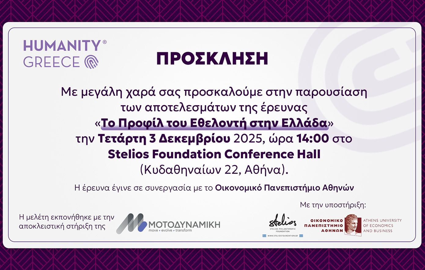 Με αφορμή την Παγκόσμια Ημέρα Εθελοντισμού, η Humanity Greece διοργανώνει ημερίδα αφιερωμένη στον άνθρωπο πίσω από την προσφορά: τον σύγχρονο εθελοντή στην Ελλάδα.