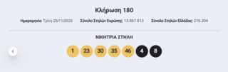 Πραγματοποιήθηκε, σήμερα, Τρίτη 25 Νοεμβρίου, η 180η κλήρωση του Eurojackpot που μοιράζει το ποσό των 10 εκατομμυρίων ευρώ.