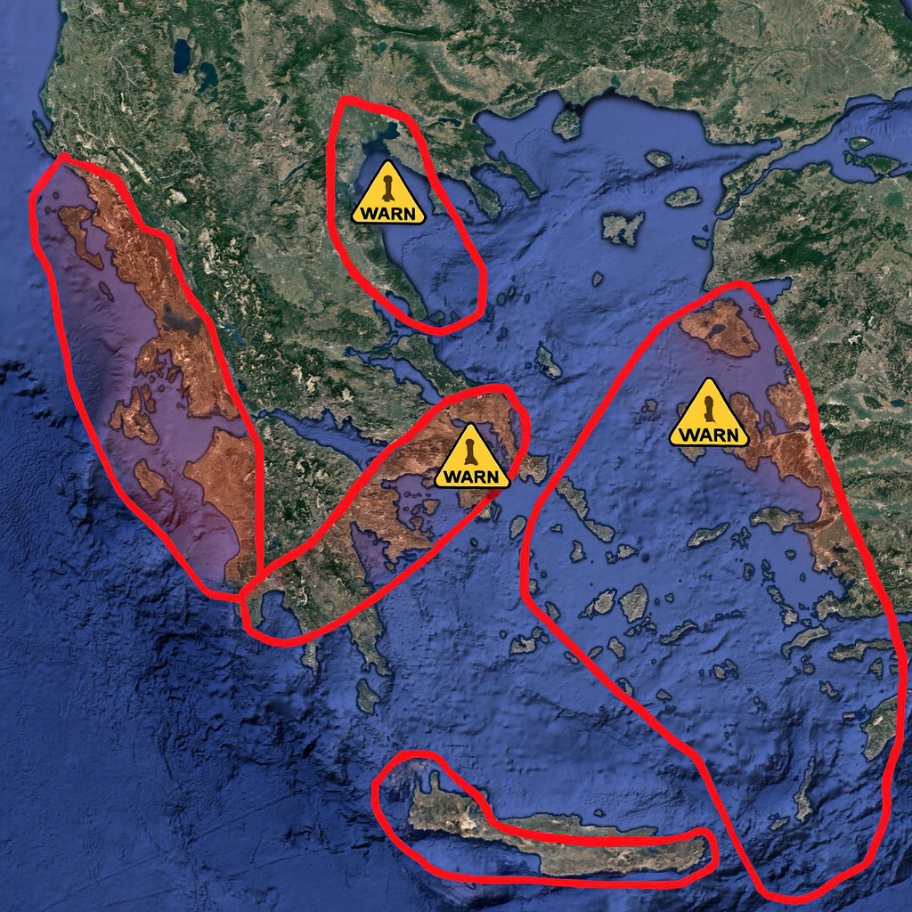 Περιοχές με τα πιο επικίνδυνα φαινόμενα (ΚΟΚΚΙΝΟΣ ΣΥΝΑΓΕΡΜΟΣ)
