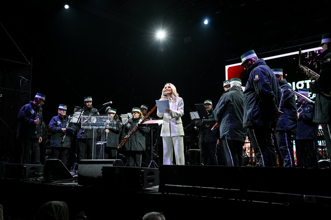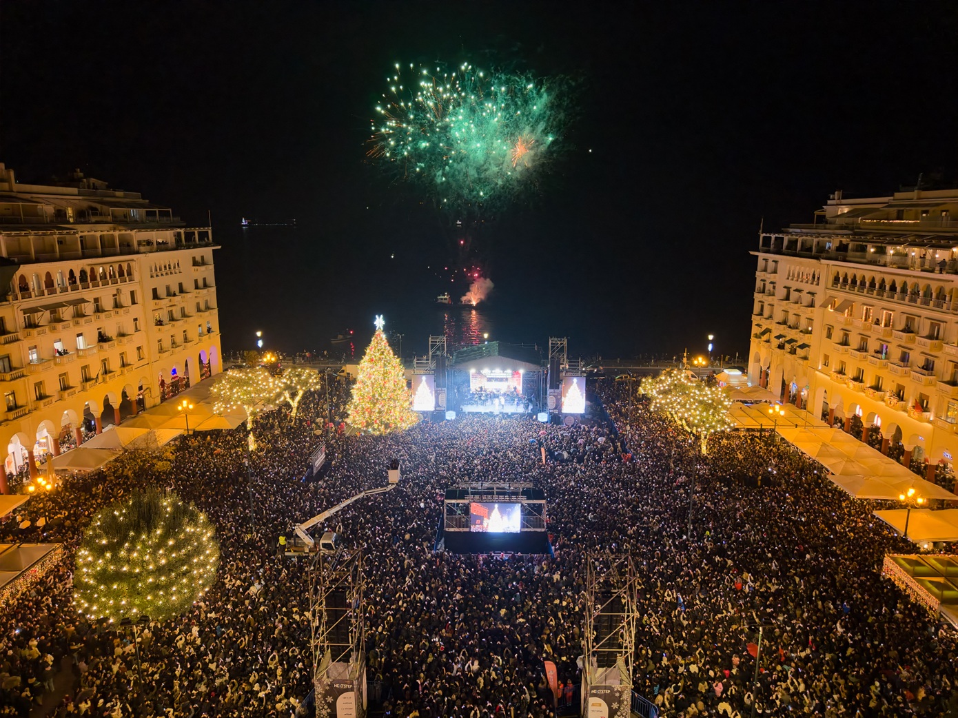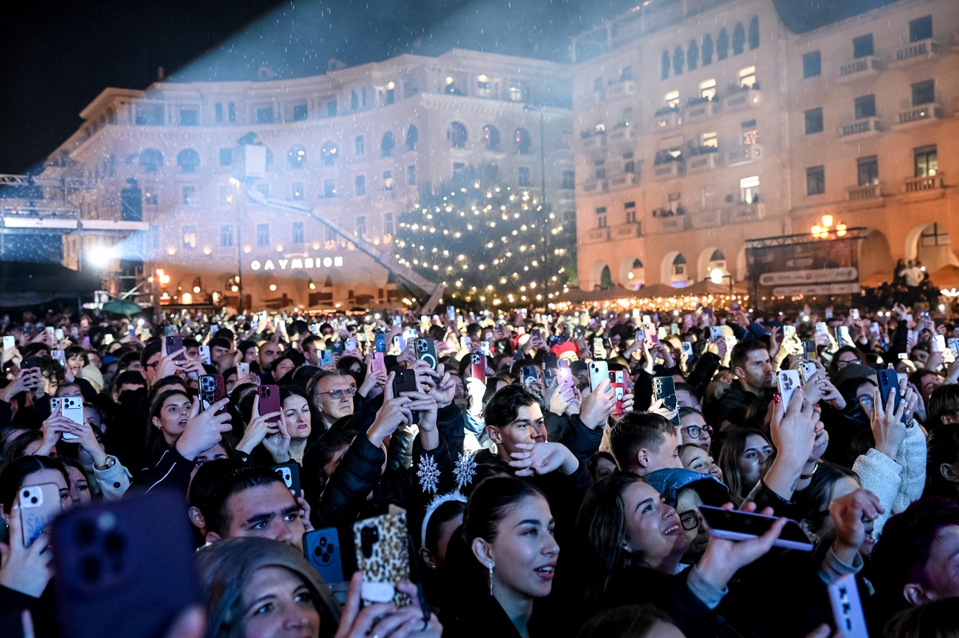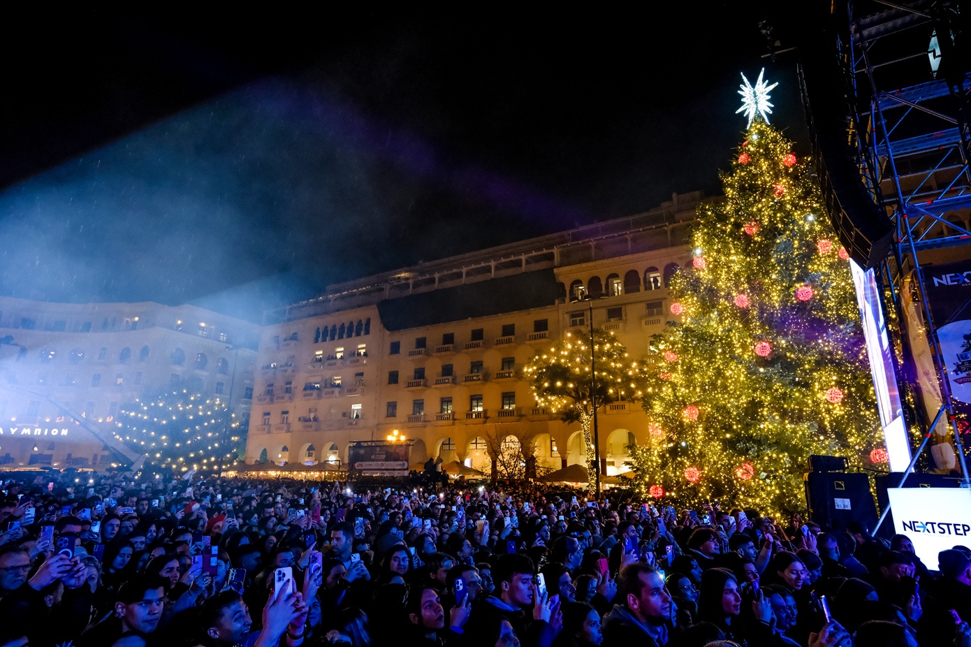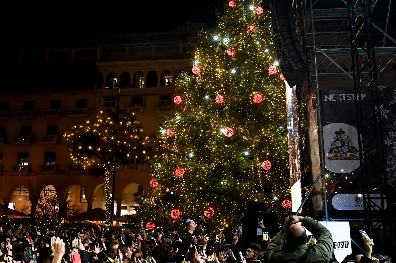Ο δήμαρχος Θεσσαλονίκης, Στέλιος Αγγελούδης, δίνοντας το σύνθημα για να ανάψουν τα χιλιάδες λαμπάκια στο εντυπωσιακό έλατο, ύψους 18 μέτρων, που στήθηκε στην κεντρική πλατεία της πόλης ευχήθηκε σε όλους «χρόνια πολλά και καλές γιορτές». Την ίδια ώρα αμέτρητα πυροτεχνήματα φώτισαν τον ουρανό της πόλης.