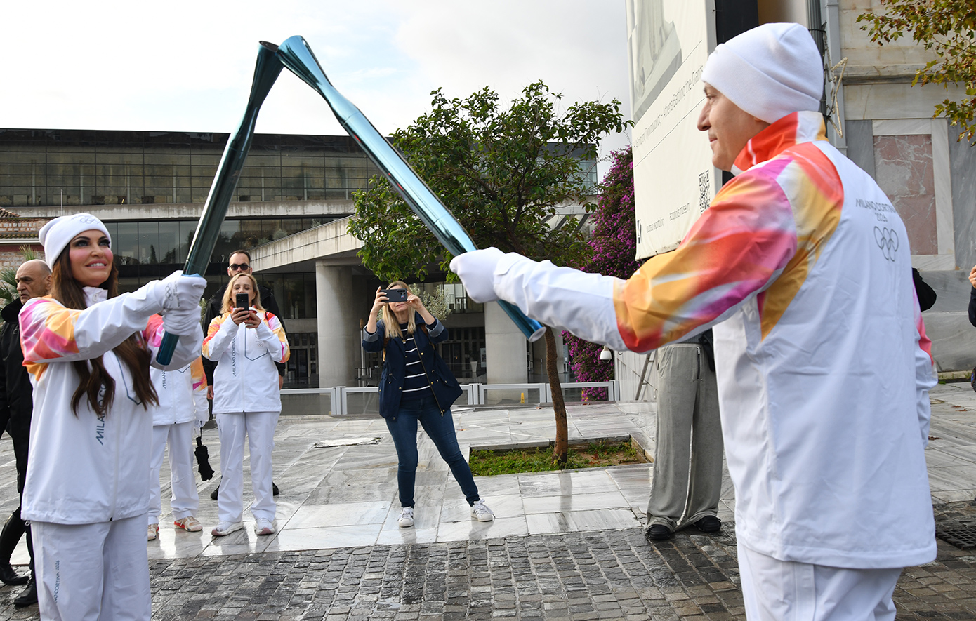 Τη δάδα τής την παρέδωσε ο Γενικός Γραμματέας της Ελληνικής Ολυμπιακής Επιτροπής και Olympian στην ιστιοπλοΐα στους Ολυμπιακούς Αγώνες της Ατλάντα το 1996, Στέφανος Χανδακάς.