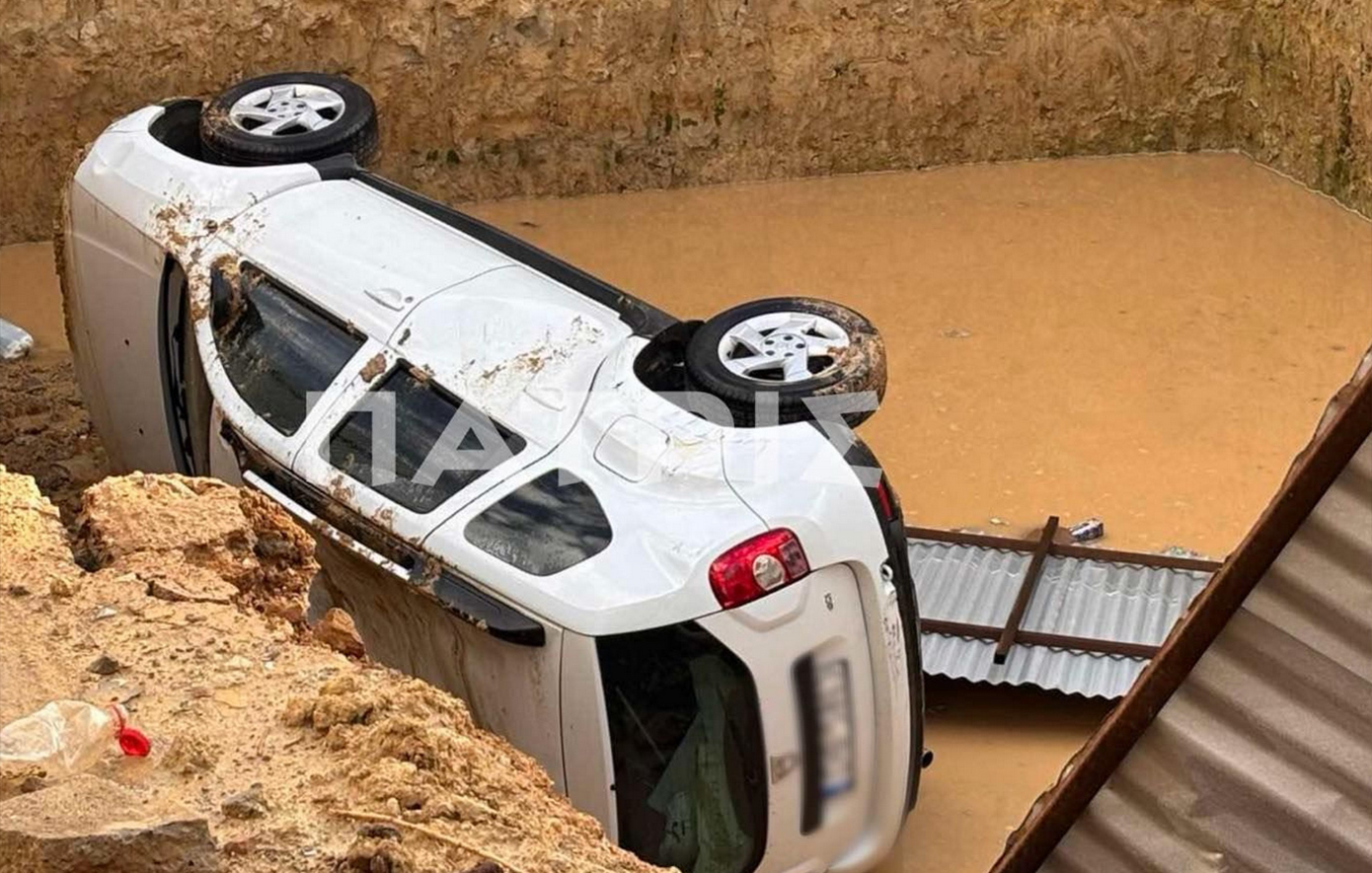 Το αυτοκίνητο που ήταν σταθμευμένο βρέθηκε σε οικόπεδο, σε βάθος τριών μέτρων.