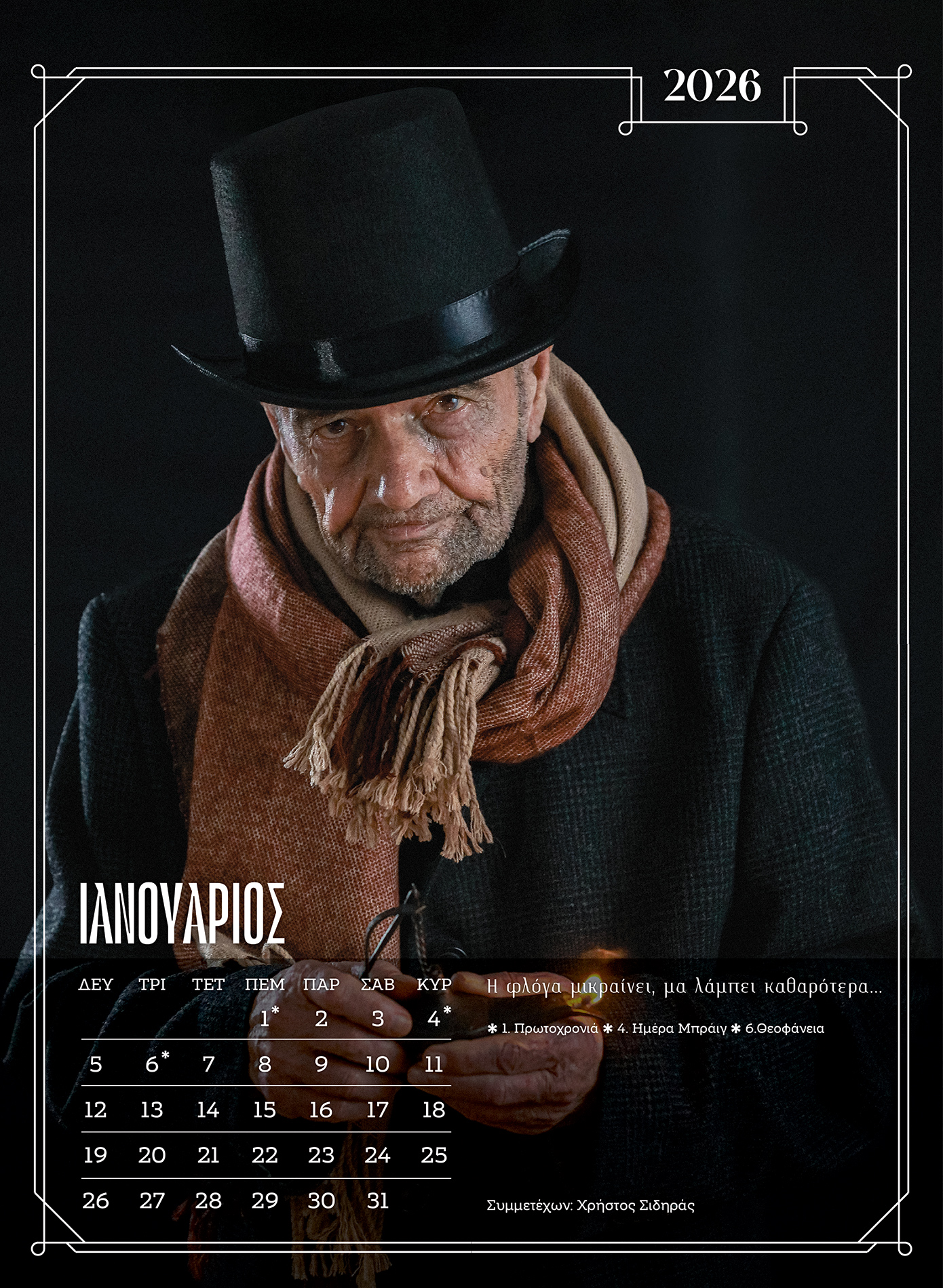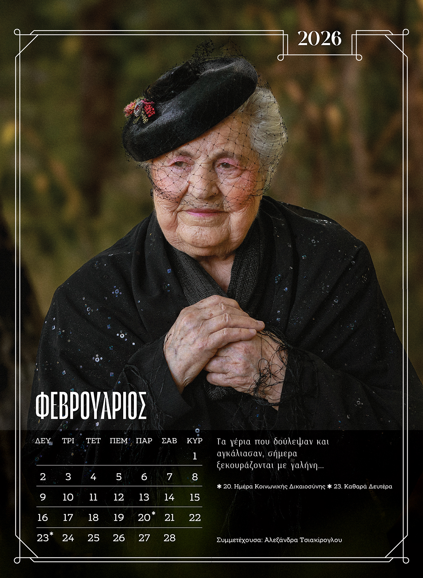 Τον Ιανουάριο, ο Χρήστος Σιδηράς ανοίγει τη χρονιά ως μια «φλόγα που μικραίνει, μα λάμπει καθαρότερα» – μια μεταφορά για όλους εκείνους που ίσως κουράστηκαν, αλλά δεν έπαψαν ποτέ να φωτίζουν. Τον διαδέχεται η Αλεξάνδρα Τσιακίρογλου του Φεβρουαρίου, με τα χέρια που «δούλεψαν και αγκάλιασαν» και σήμερα διεκδικούν τη δική τους γαλήνη, σαν μια ανθρωπιά που αντέχει στον χρόνο.