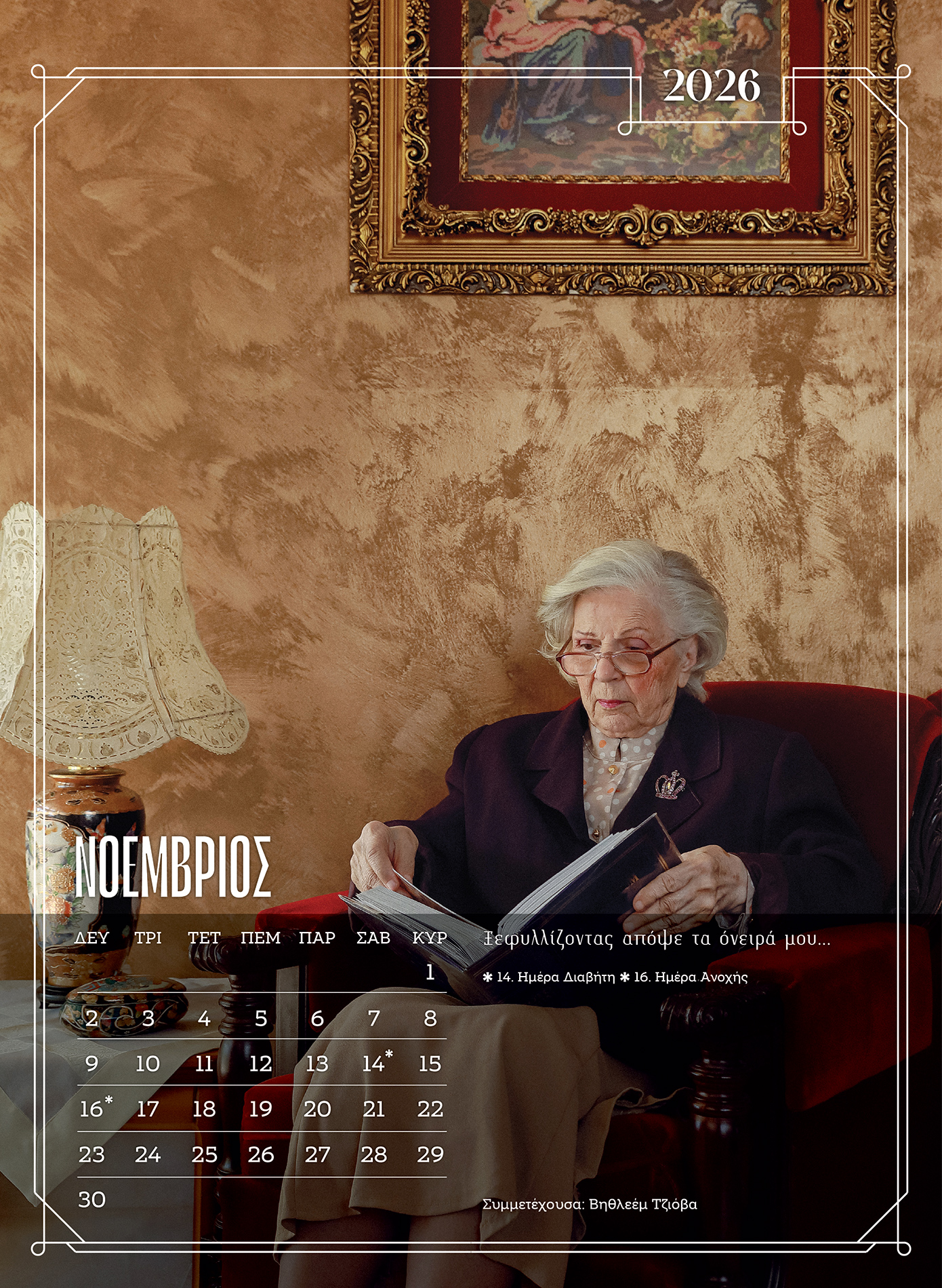 Ο Νοέμβριος ανήκει στη Βηθλεέμ Τζιόβα, που «ξεφυλλίζει τα όνειρά της» σαν να ξεφυλλίζει άλμπουμ αναμνήσεων. Και ο Δεκέμβριος κλείνει τη χρονιά με την Αρχοντούλα Νέγκογλου, εκεί όπου «το τραπέζι στρώνεται με χαμόγελο και μνήμες», προσκαλώντας μας σε μια γιορτή γεμάτη τρυφερότητα.