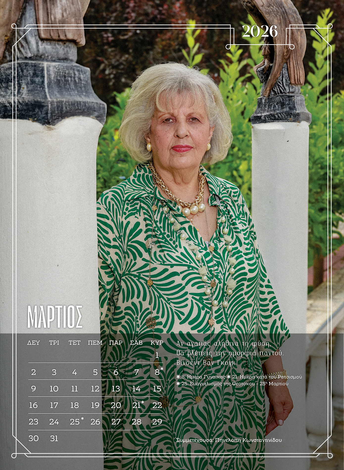 Ο Μάρτιος φέρνει μαζί του τη φωνή του Βαν Γκογκ, μέσα από την Πηνελόπη Κωνσταντινίδου: «Αν αγαπάς αληθινά τη φύση, θα βλέπεις την ομορφιά παντού» — μια υπενθύμιση ότι η ομορφιά δεν είναι θέμα ηλικίας, αλλά ματιάς. Και τον Απρίλιο, ο Ιωάννης Καπετανόπουλος μας ξεναγεί στο δικό του βιβλίο ζωής, εκεί όπου κάθε σελίδα – όπως οι σελίδες της εφημερίδας που κρατά στα χέρια του – είναι και μια ιστορία που αξίζει να ειπωθεί.