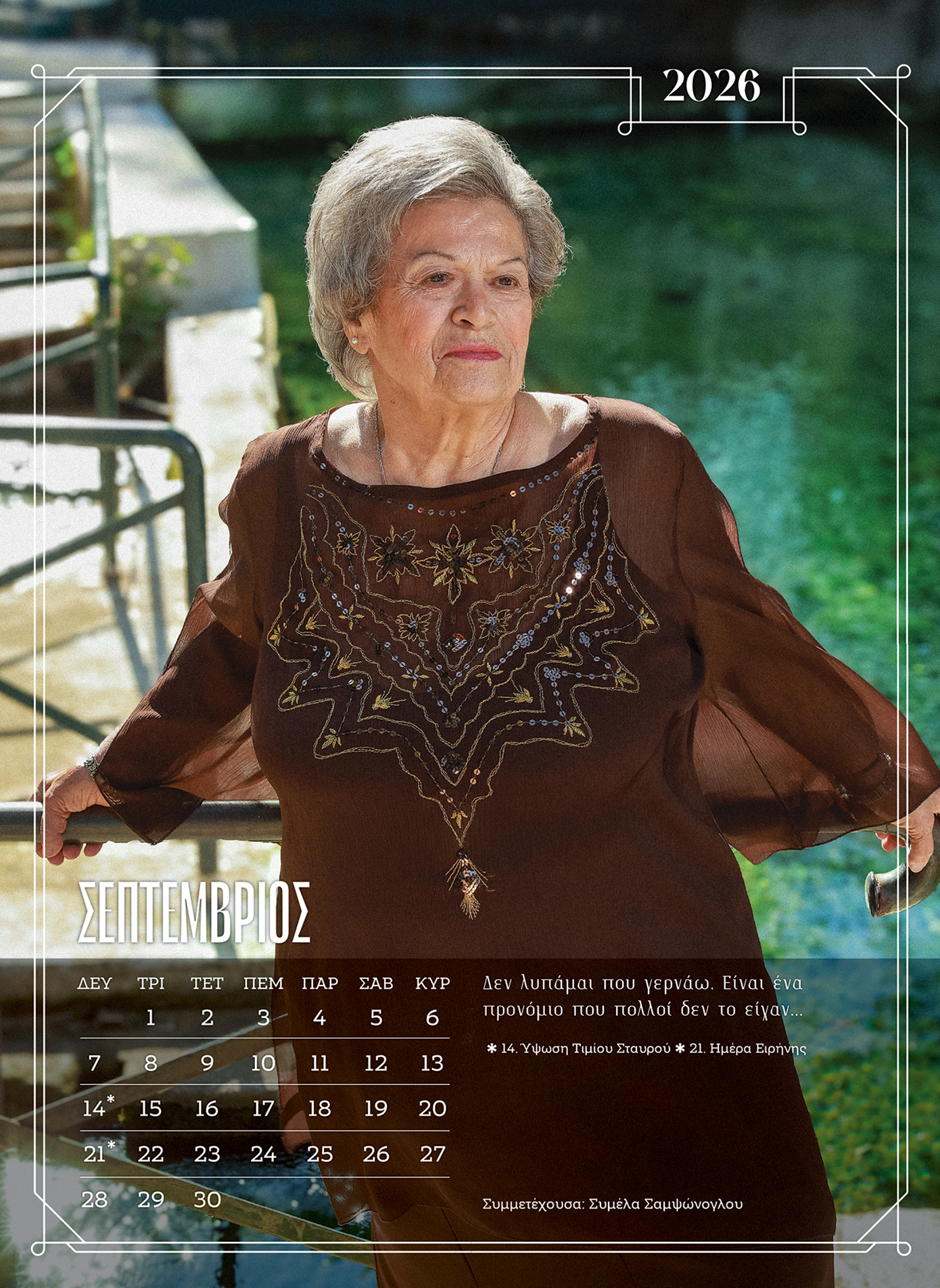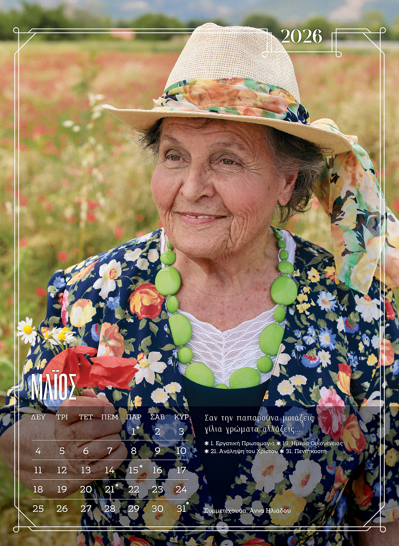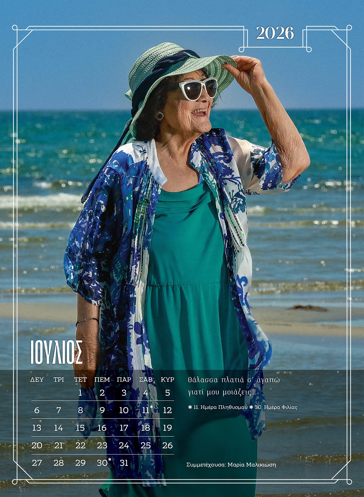 Κάθε μήνας και ένας πρωταγωνιστής. Κάθε σελίδα και μια μικρή αποκάλυψη. Λόγια γεμάτα σοφία, χιούμορ, τρυφερότητα και ανεπιτήδευτη ομορφιά. Ένα ημερολόγιο που δεν μετράει απλώς τον χρόνο, αλλά τον γιορτάζει – μέσα από ανθρώπους που αποδεικνύουν ότι η λάμψη δεν έχει ηλικία.