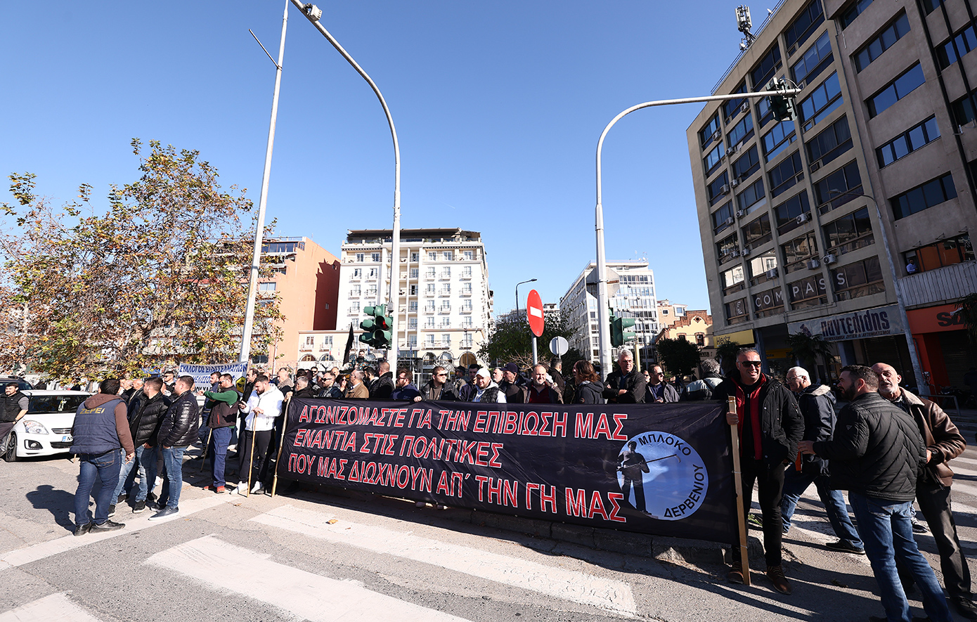 Στη διαμαρτυρία συμμετέχουν επίσης μελισσοκόμοι και σε ένδειξη συμπαράστασης φοιτητές και εργατικά σωματεία.