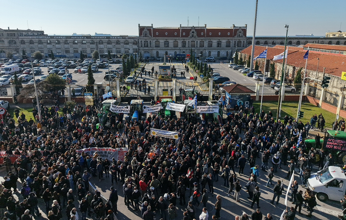 Επιμένουν στις δυναμικές τους κινητοποιήσεις οι αγρότες, οι οποίοι έφτασαν λίγο πριν από τις 12:00 το μεσημέρι της Παρασκευής 12/12 στο λιμάνι της Θεσσαλονίκης. Αρχικά έφτασαν τρακτέρ από τα Μάλγαρα και πέντε από αυτά παρατάχθηκαν μπροστά στην κλειστή πύλη του λιμανιού, στην οδό Κουντουριώτου, πραγματοποιώντας συμβολικό αποκλεισμό του λιμανιού.