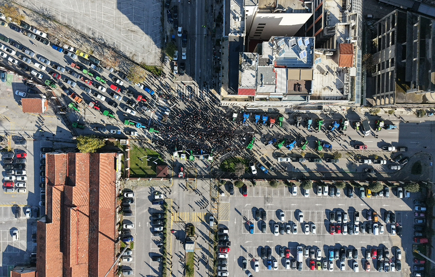 Ένα τέταρτο αργότερα κατέφθασε αντίστοιχος αριθμός τρακτέρ από τα «Πράσινα Φανάρια», στην οδό Κουντουριώτου, και παρατάχθηκαν δεξιά και αριστερά στον δρόμο, σύμφωνα με τις υποδείξεις της Τροχαίας.