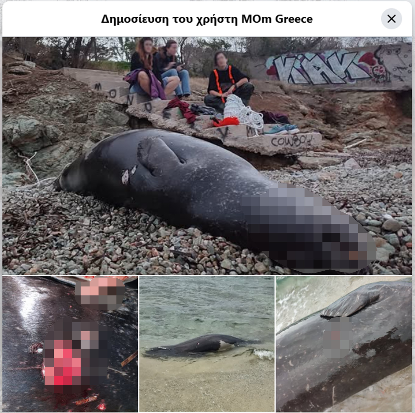 Οι ειδικοί διαπίστωσαν με λύπη πως η φώκια – ένα ενήλικο αρσενικό άτομο – είχε πέσει θύμα ηθελημένης θανάτωσης με χρήση κυνηγετικού όπλου. Η MOm χαρακτήρισε την ενέργεια ως εγκληματική πράξη, τονίζοντας ότι στέρησε από το ζώο το δικαίωμα να κολυμπάει ελεύθερο στις θάλασσες του Αργοσαρωνικού.