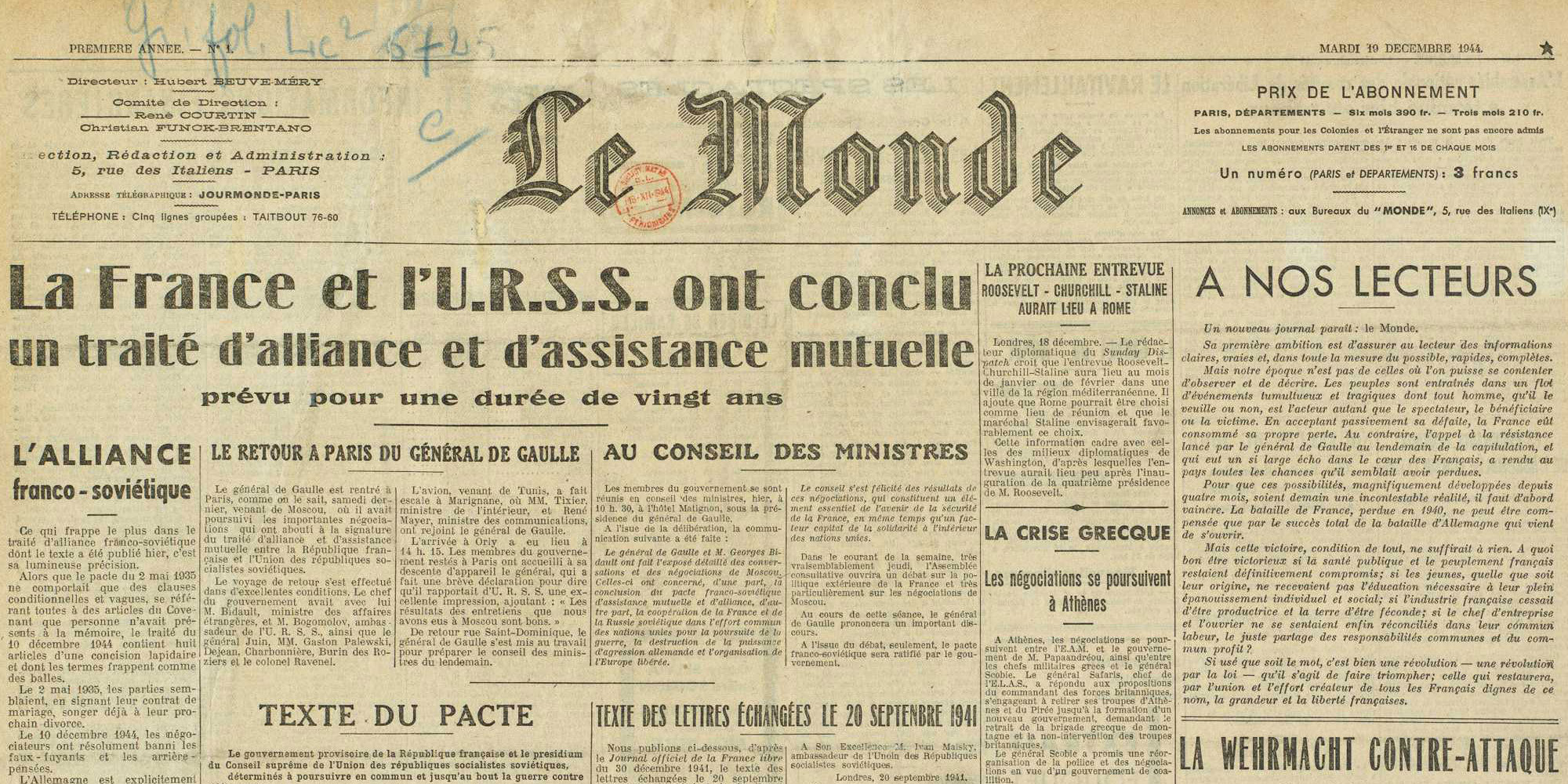 1944: Κυκλοφορεί το πρώτο φύλλο της γαλλικής εφημερίδας «Le Monde».