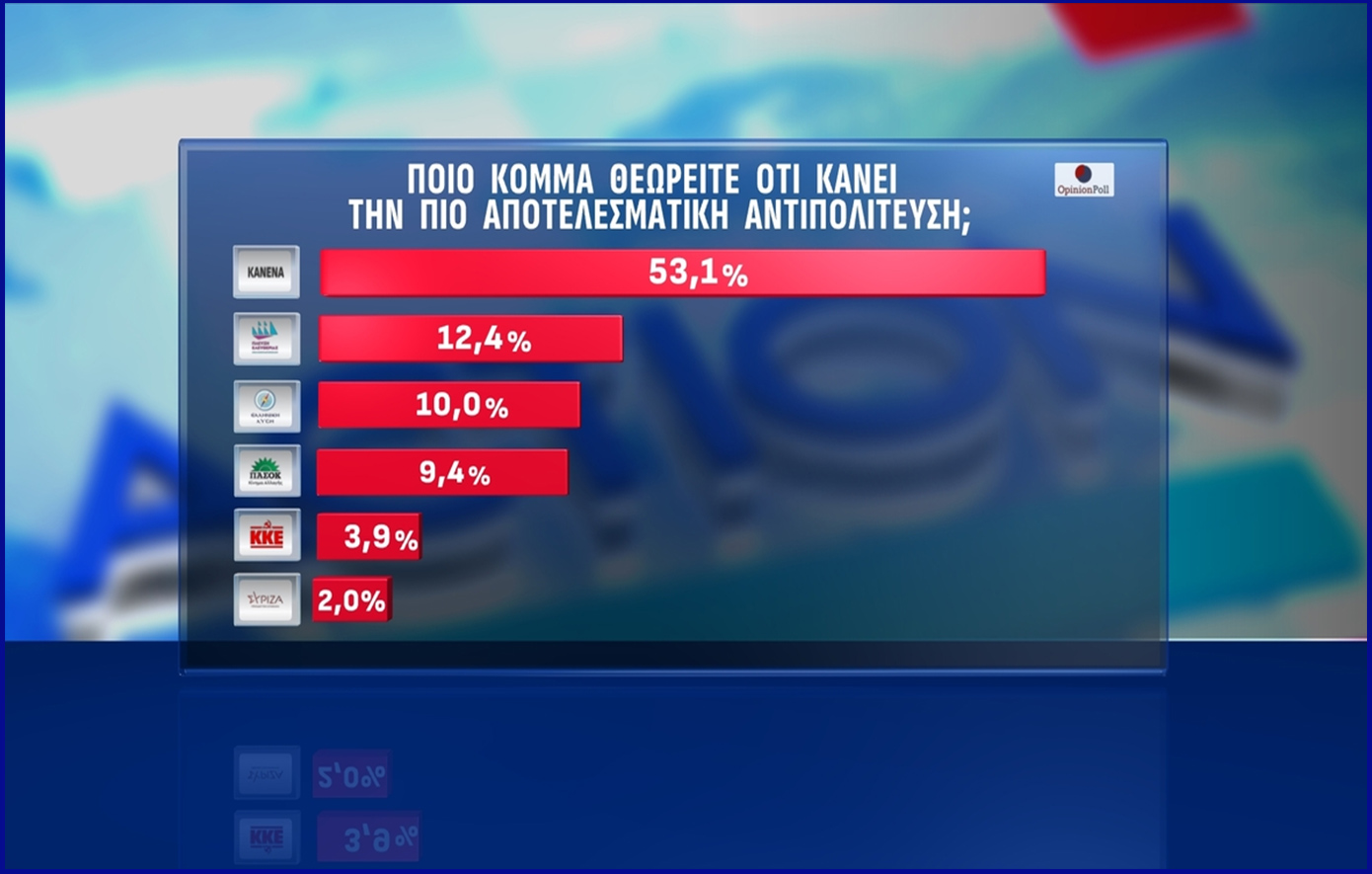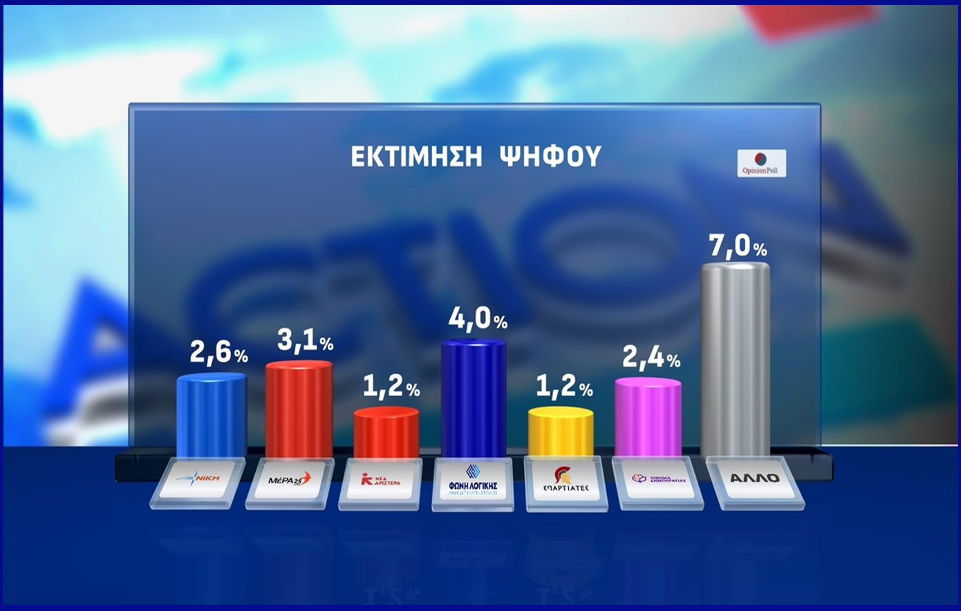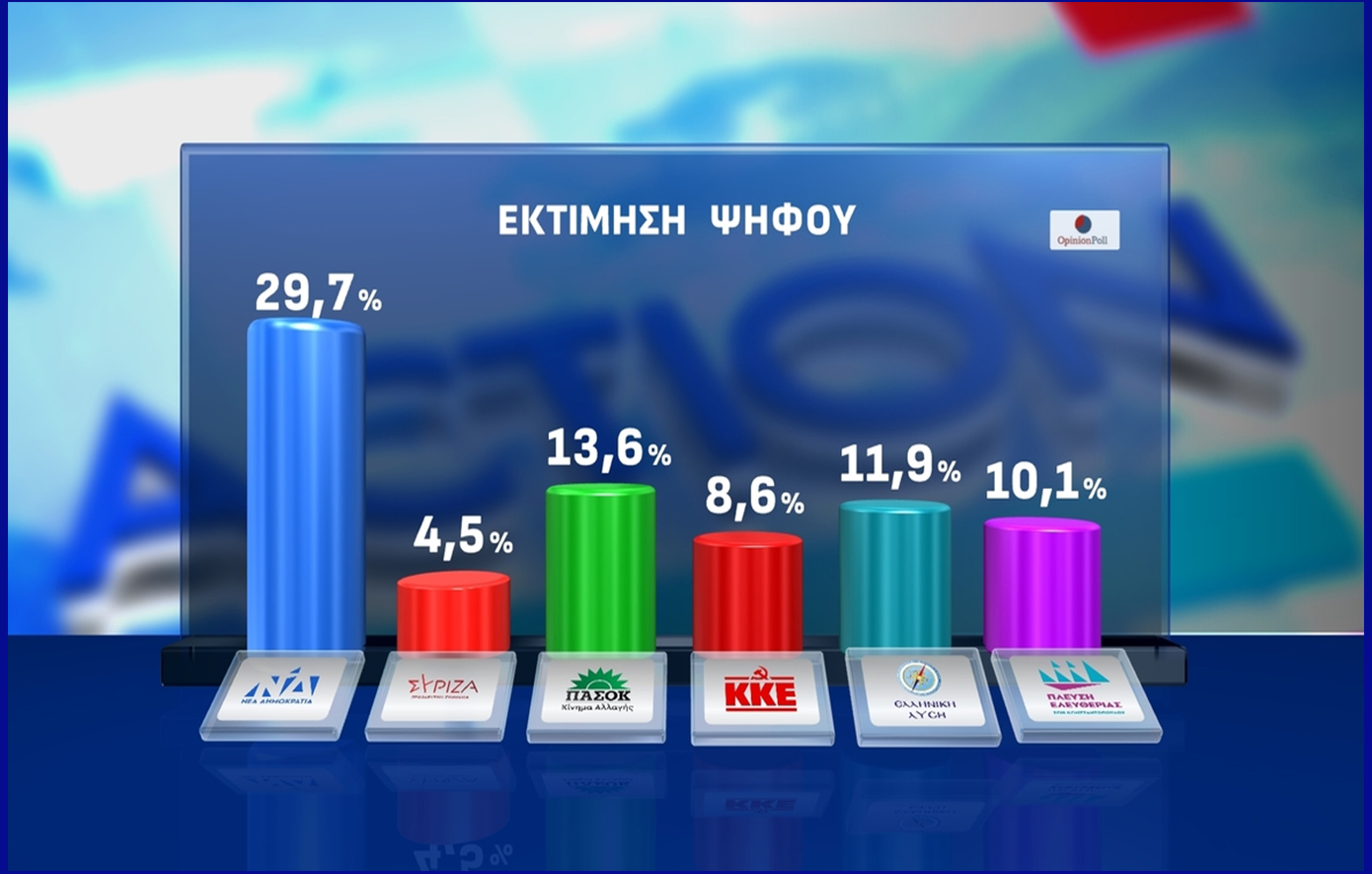 Η Opinion Poll πραγματοποίησε δημοσκόπηση για το Action 24, με τη Νέα Δημοκρατία να βγαίνει πρώτη και το ΠΑΣΟΚ να έρχεται δεύτερο.