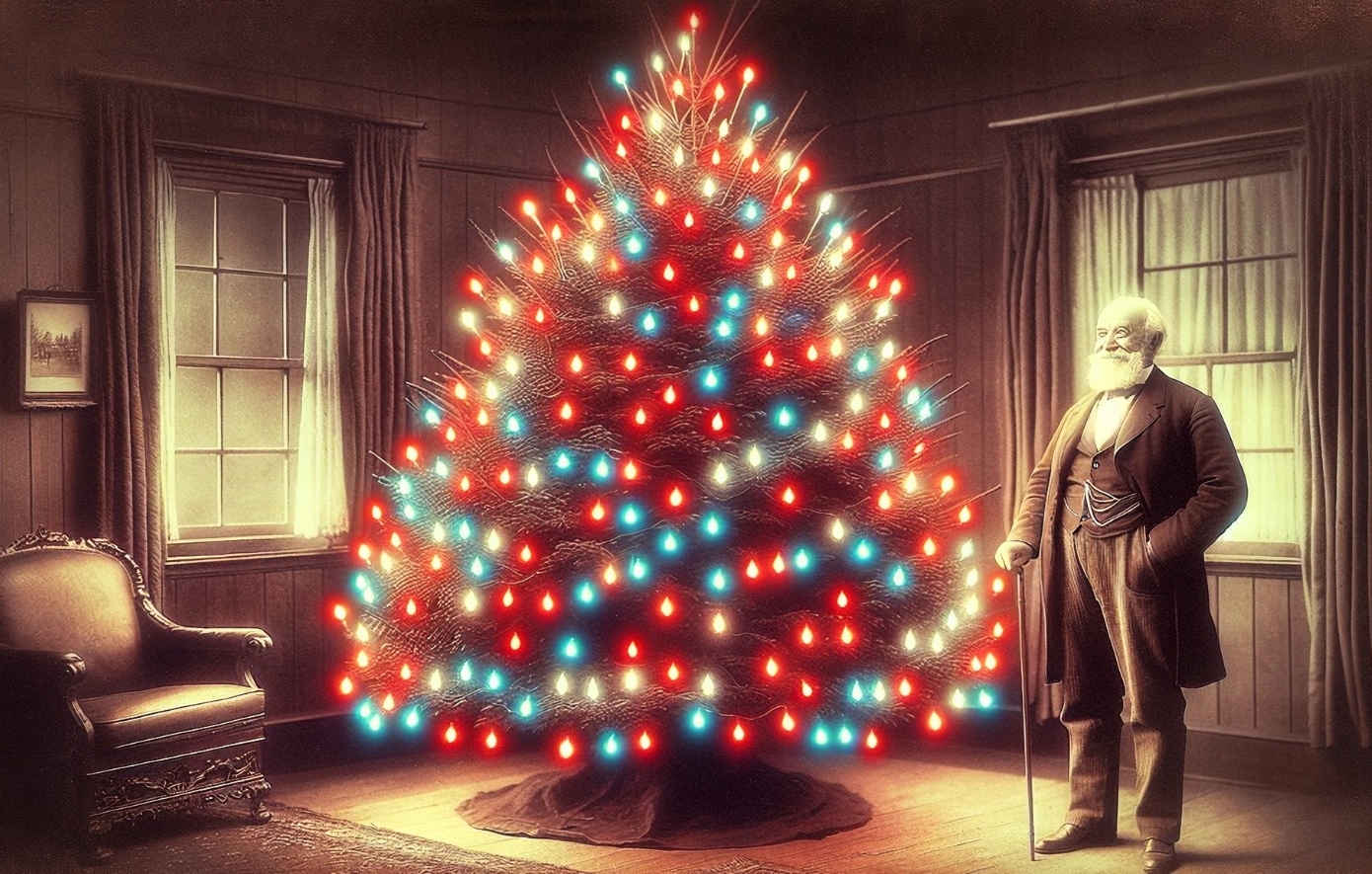 1882: Ο Τόμας Έντισον στολίζει το πρώτο χριστουγεννιάτικο δέντρο με ηλεκτρικά λαμπιόνια, αντικαθιστώντας τα παραδοσιακά κεριά και δείχνοντας στην πράξη τις δυνατότητες του νέου φωτισμού. Το δέντρο, φωτισμένο με δεκάδες μικρές λάμπες, γίνεται εντυπωσιακό θέαμα για τους επισκέπτες και σύμβολο της «ηλεκτρικής εποχής» που ανατέλλει, ανοίγοντας τον δρόμο για την καθιέρωση των χριστουγεννιάτικων φώτων σε σπίτια, δρόμους και βιτρίνες σε ολόκληρο τον κόσμο.