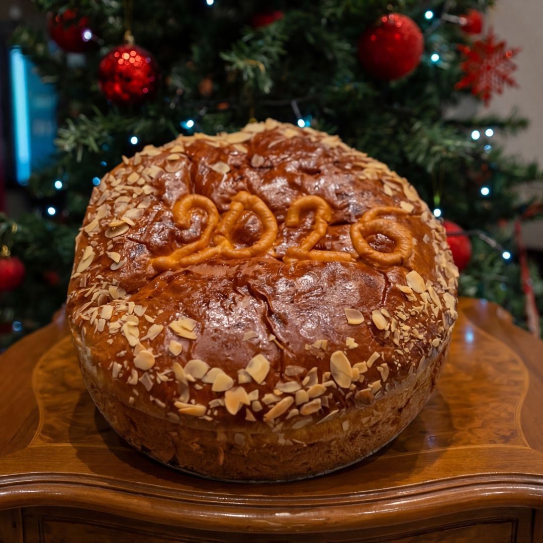 Φυσικά, δεν θα μπορούσε να λείπει η βασιλόπιτα τσουρέκι: αρωματική, μαστιχωτή, με εκείνη την υφή που ξεχωρίζει από την πρώτη μπουκιά — και σε επιλογή χωρίς ζάχαρη, για όσους θέλουν πιο…”ελαφριά” απόλαυση.