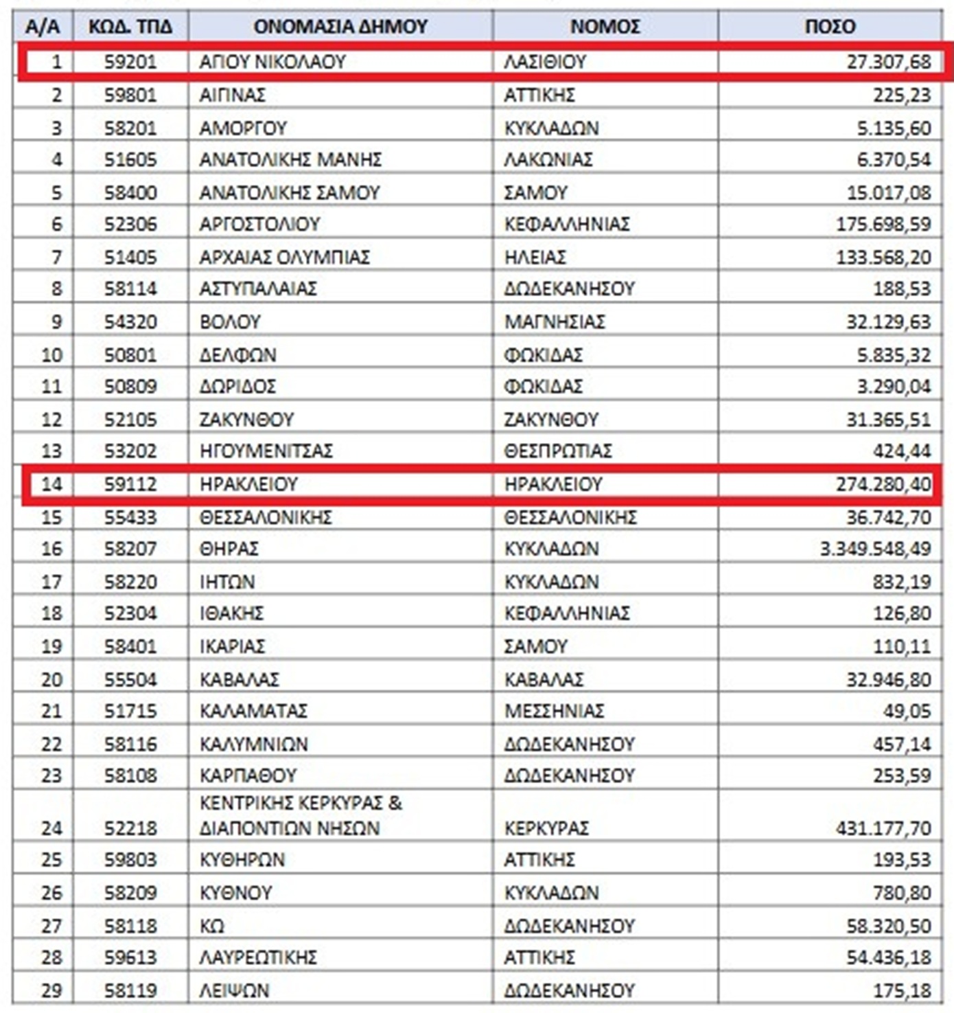 - Δήμος Αγίου Νικολάου: 27.307,68 ευρώ