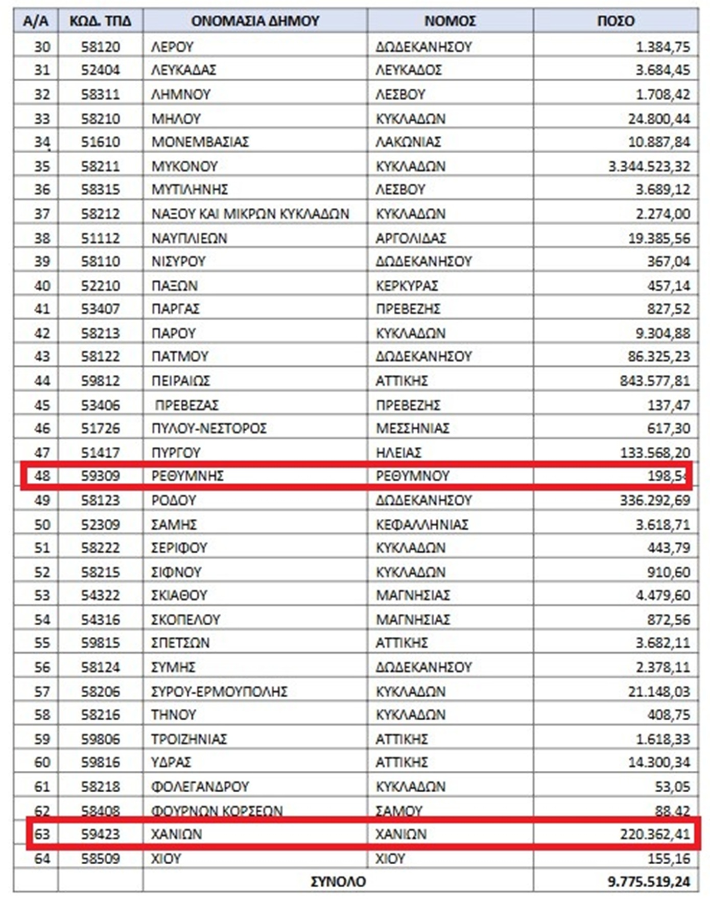 Αναλυτικά τα ποσά που θα λάβουν οι δήμοι της Κρήτης: