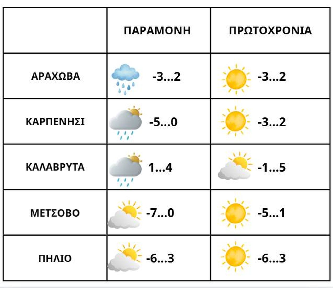 Ο καιρός την Πέμπτη 01-01-2026 (Πρωτοχρονιά)