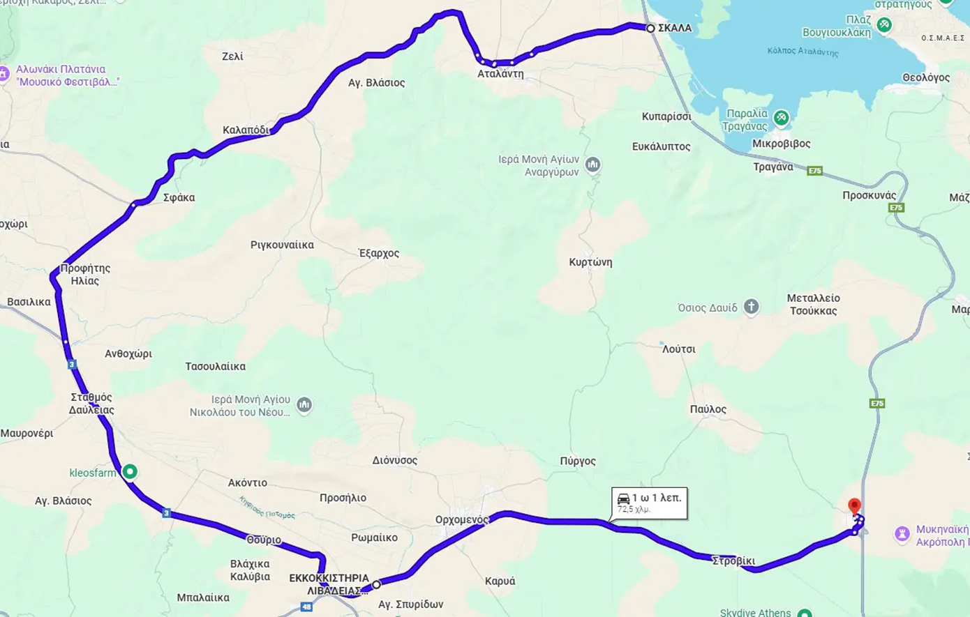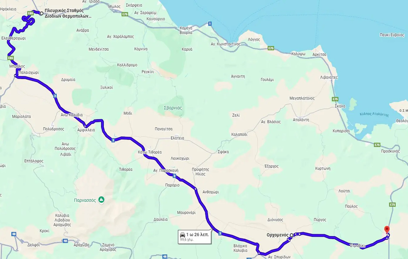 1) έξοδος από τον Αυτοκινητόδρομο στον Η/Κ Ανθήλης και κινούμενοι μέσω Μπράλου, Αμφίκλειας, Κάτω Τιθορέας, Ορχομενού να εισέρχονται στον Α/Κ Κάστρου (επισυνάπτεται σχετική οπτική απεικόνιση)