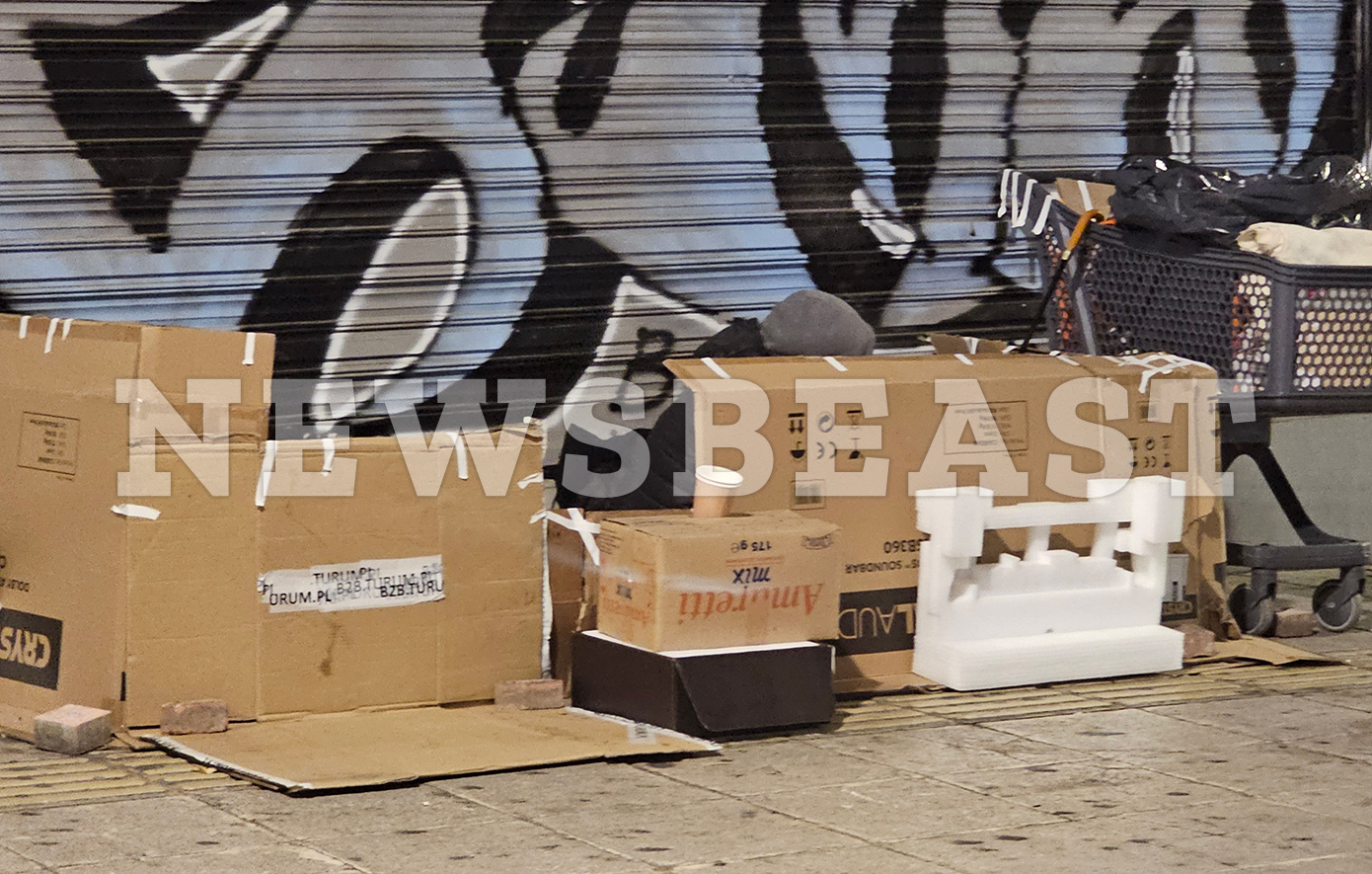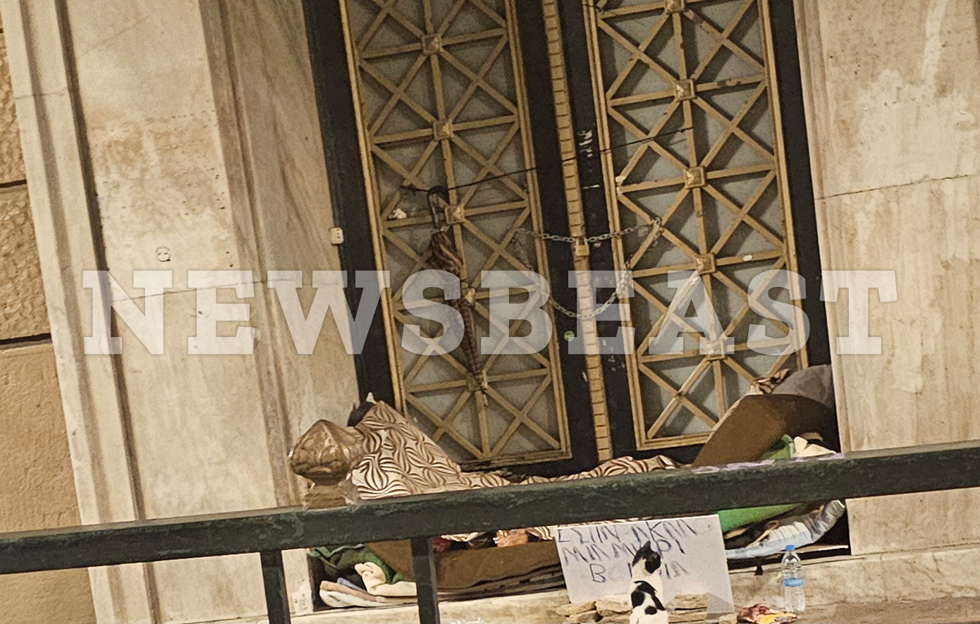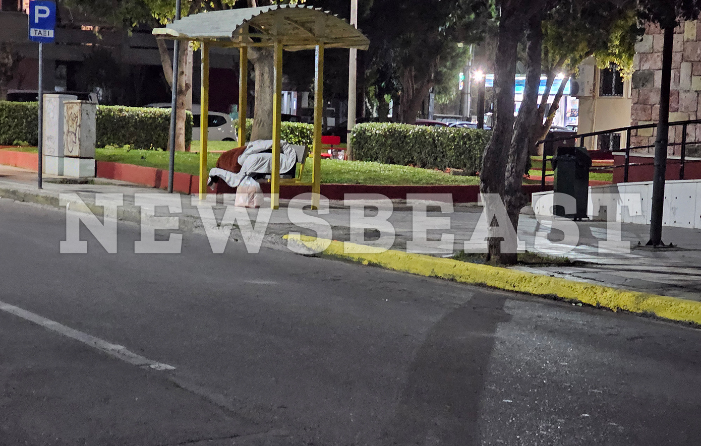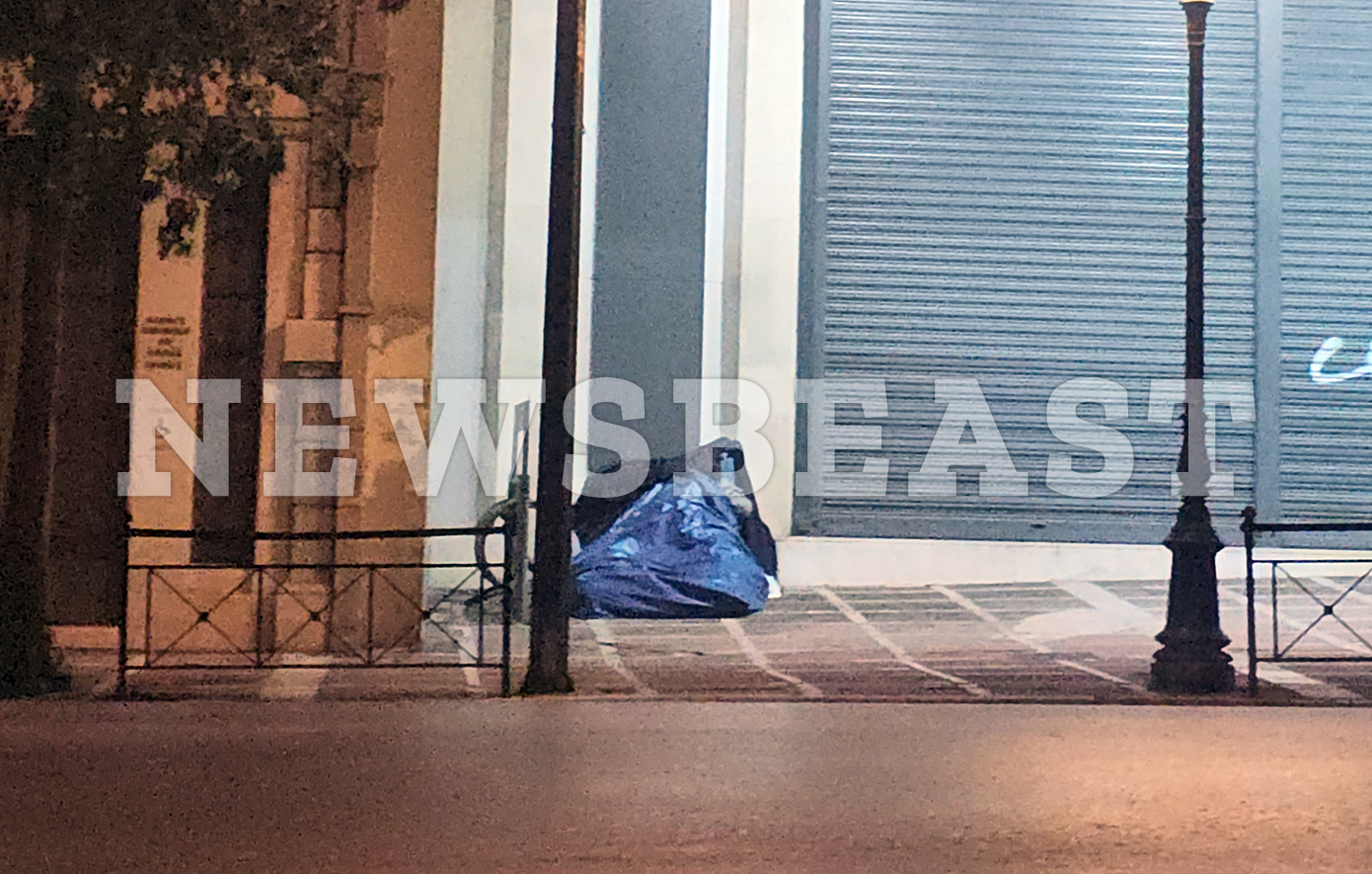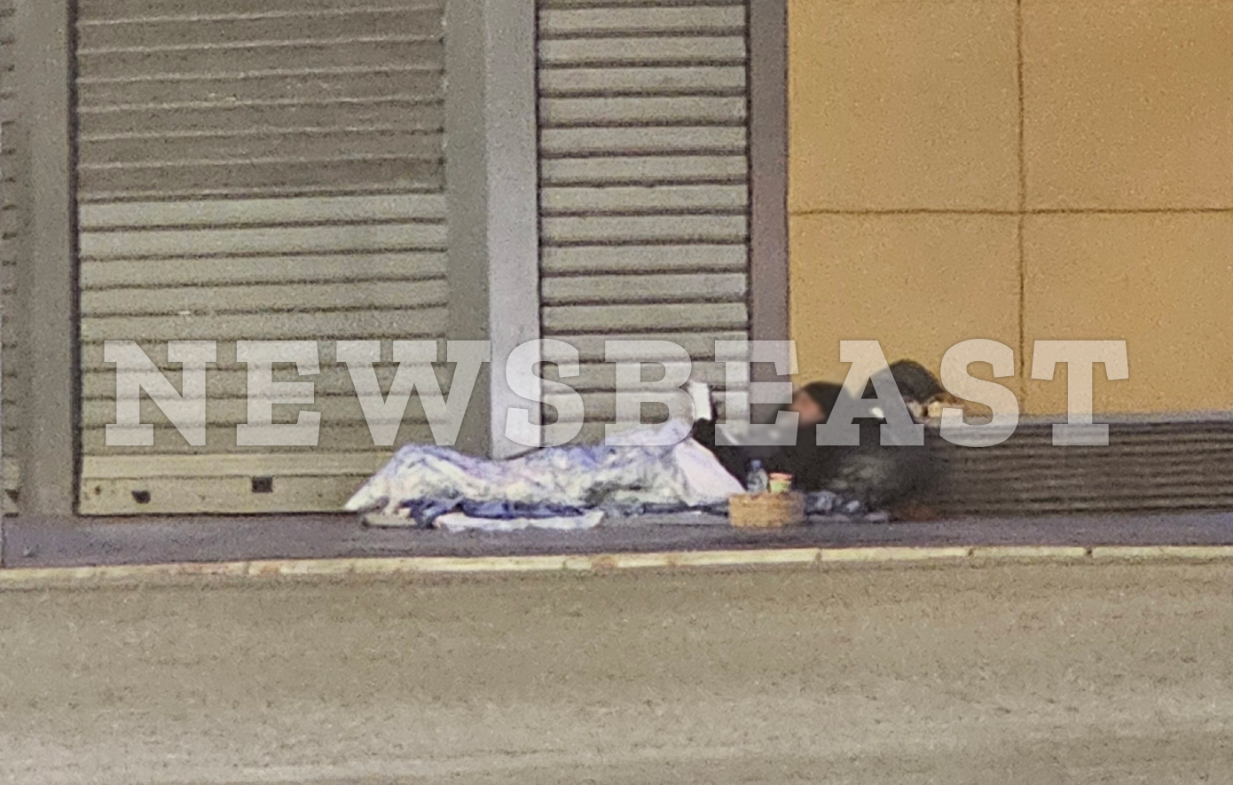 Η κάμερα του Newsbeast στην Ιπποκράτους συνάντησε δύο ανθρώπους που είχαν στήσει τα αυτοσχέδια κρεβάτια τους στο πεζοδρόμιο. Μια γυναίκα έξω από ένα βιβλιοπωλείο είχε «παραδοθεί» στην αγκαλιά του Μορφέα και δεν κατάλαβε την παρουσία μας. Πέντε έξι μέτρα πιο κάτω, ένας άντρας είχε στήσει το δικό του σπιτικό χρησιμοποιώντας χαρτόκουτα. Διακρίναμε το σκουφάκι του από το κεφάλι του, όπως ήταν καθισμένος προσπαθώντας να προφυλαχθεί από το κρύο.