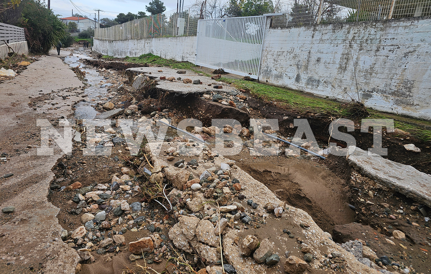 Όπως φάινεται στις αποκλειστικές φωτογραφίες, ο δρόμος στην οδό Γορτυνίας, κόπηκε στα δύο, ενώ άνοιξε και ο αγωγός.