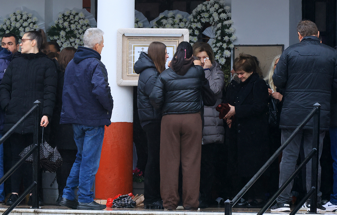 Συγγενείς, φίλοι και συνάδελφοι έχουν συγκεντρωθεί στον ναό για να πουν το τελευταίο «αντίο».