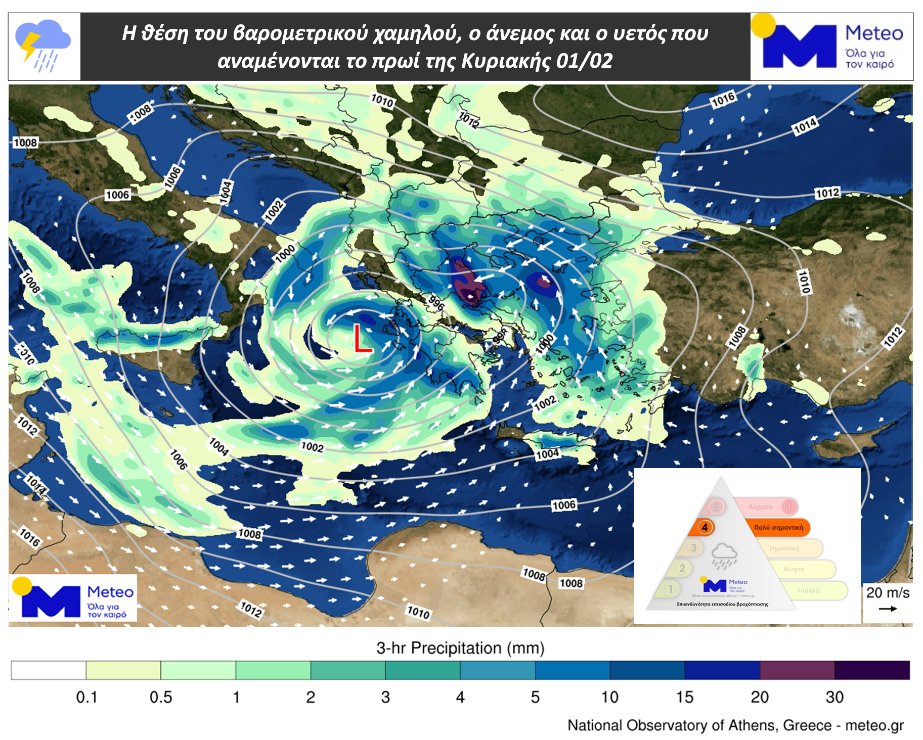 Σύμφωνα με την κατηγοριοποίηση επεισοδίων βροχόπτωσης (RPI) που εφαρμόζει η μονάδα Meteo του Εθνικού Αστεροσκοπείου Αθηνών, το συγκεκριμένο καιρικό σύστημα κατατάσσεται στην Κατηγορία 4 (Πολύ Σημαντική), γεγονός που υποδηλώνει αυξημένο κίνδυνο εκδήλωσης προβλημάτων.