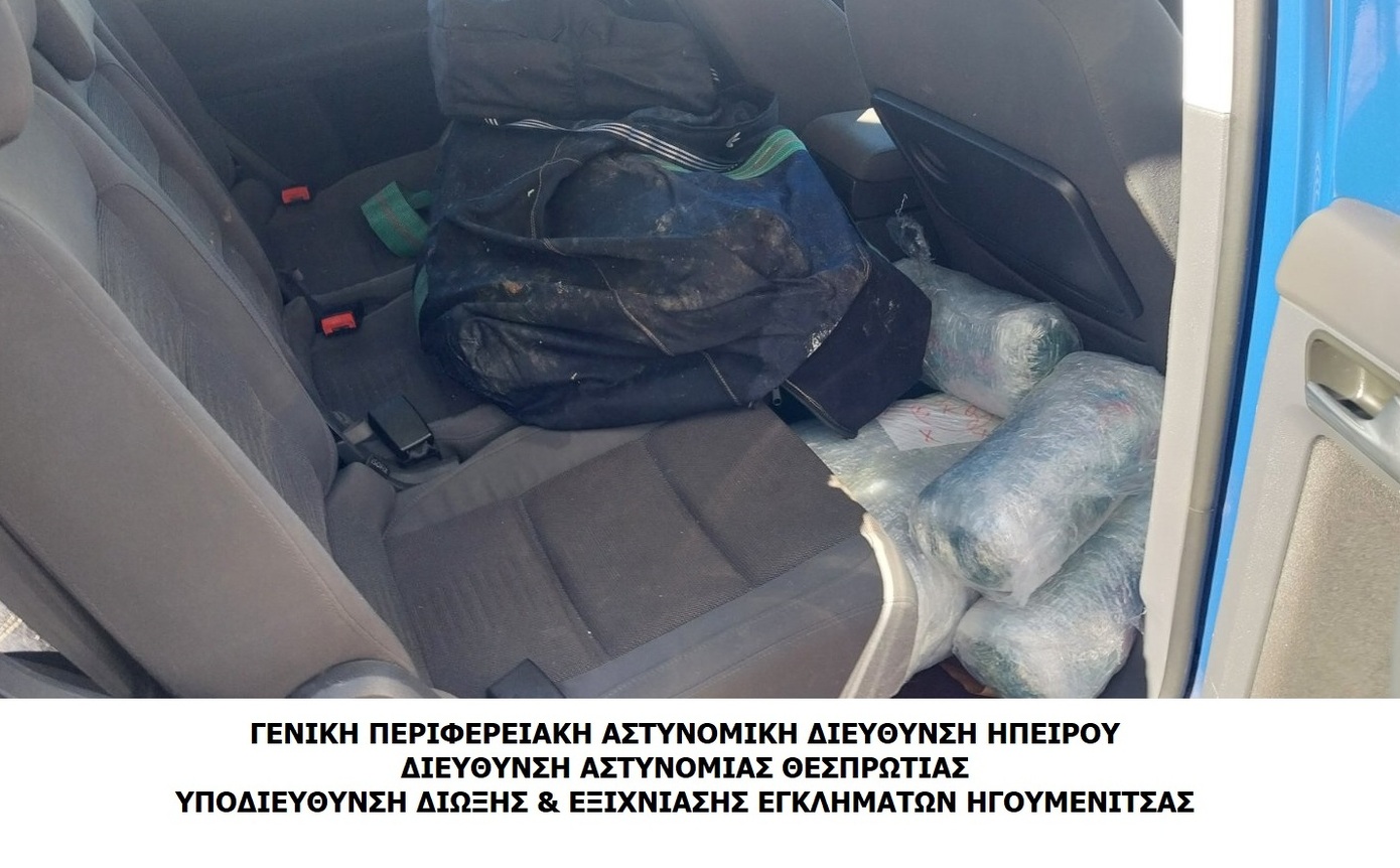 Ειδικότερα, οι αστυνομικοί εντόπισαν σε περιοχή των Φιλιατών Θεσπρωτίας, στο πλαίσιο στοχευμένων ελέγχων, ένα αυτοκίνητο το οποίο κινούνταν ύποπτα.