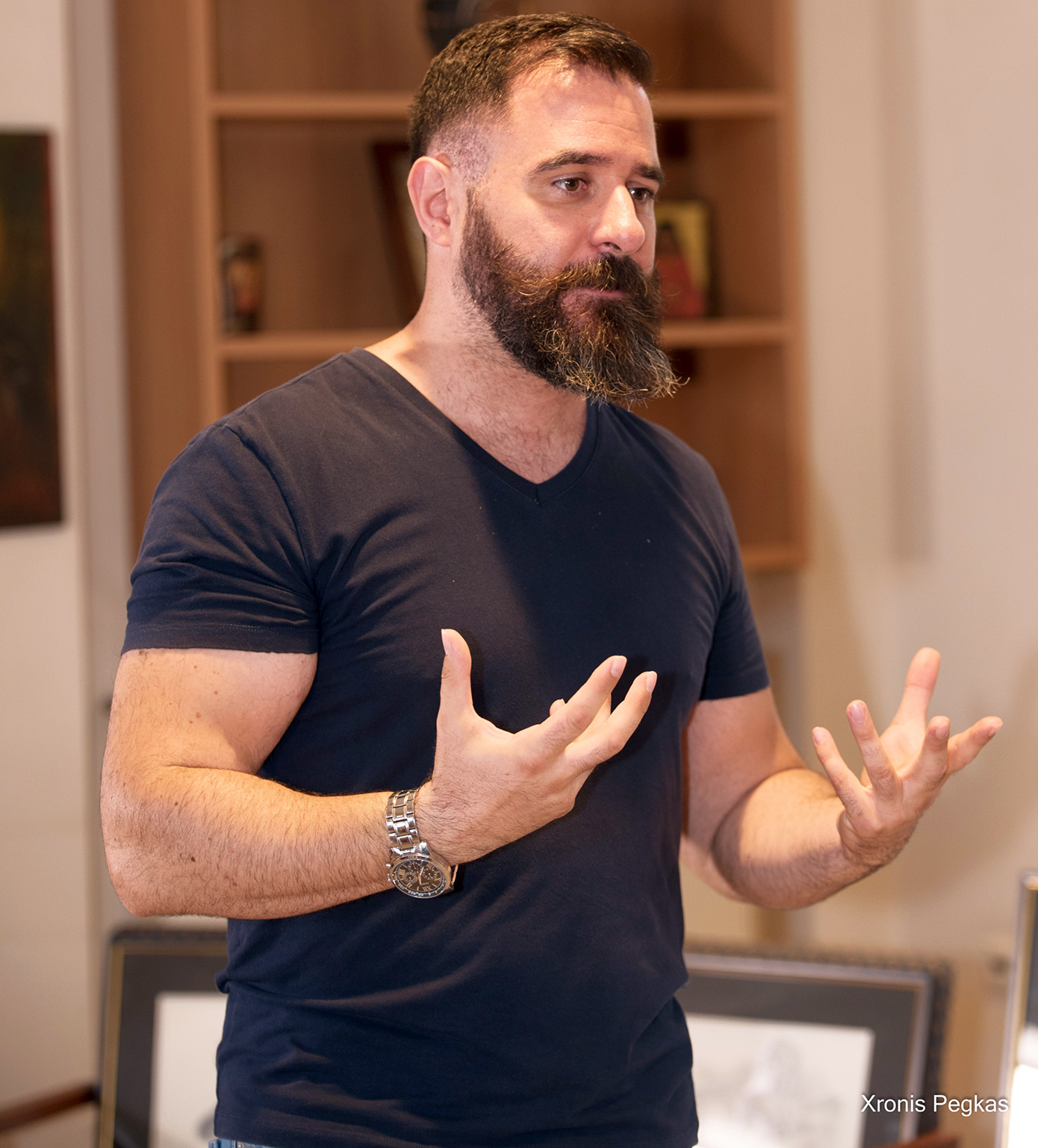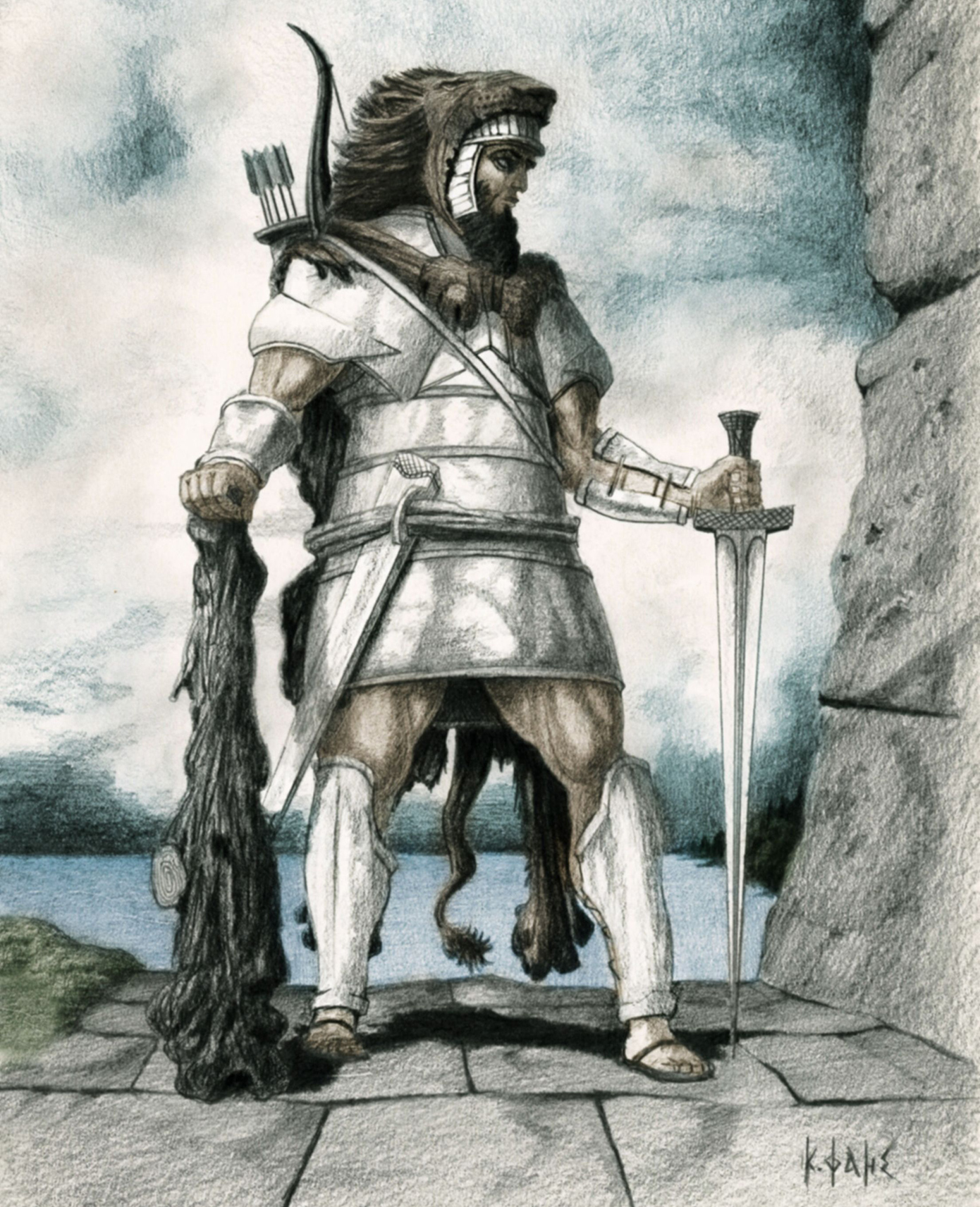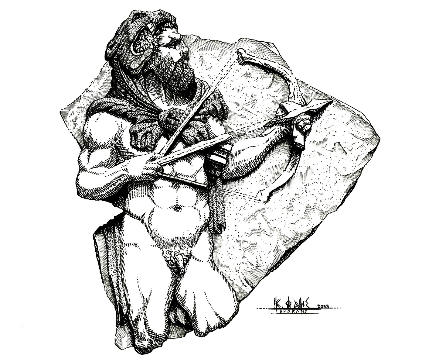 Εν πρώτοις να επισημάνω ότι δημιουργώ εικαστικές αποδόσεις του απώτερου παρελθόντος γενικότερα, εντούτοις ναι, η μυθολογία ανέκαθεν υπήρξε ο ακρογωνιαίος λίθος για την εικαστική και ερευνητική μου πορεία. Εξ όσων ενθυμούμαι, από πολύ μικρός γοητευόμουν από καθετί που δεσπόζει στον χρόνο και δύναται να αποτελέσει τροφή σκέψης και εξέλιξης για τον κόσμο μας. Η αγάπη μου για το διαχρονικό είναι έμφυτη και η εκάστοτε μυθολογική αφήγηση πηγάζει από τη λεγόμενη Ηρωική Εποχή, ήτοι την Εποχή του Χαλκού, διότι -μεταξύ άλλων- άνθρωποι με θεϊκή καταγωγή και χαρίσματα, οι περίφημοι ήρωες, έζησαν εκείνη την περίοδο κατά την παράδοση. Μυθολογία σημαίνει προφορική μεταλαμπάδευση από γενιά σε γενιά αφηγήσεων εμπνευσμένων από βιώματα, υπαρκτά πρόσωπα και φυσικά φαινόμενα κατά την Εποχή του Χαλκού και του Σιδήρου ακριβώς λόγω έλλειψης γραφής, υπό τη λογοτεχνική προσέγγιση προφανώς. Διότι γραφή, γενικώς μιλώντας, υπήρξε στον Μινωικό και στον Μυκηναϊκό πολιτισμό, ήτοι τη 2η χιλιετία π.Χ., η Γραμμική Α και η Γραμμική Β. Η πτώση της Χαλκοκρατίας τον 12ο αιώνα π.Χ. λοιπόν, παρέσυρε στην άβυσσο της Ιστορίας και τον ηρωικό κόσμο. Ως εκ τούτου, το να απαθανατίζω μέσα από την καλλιτεχνική μου ιδιότητα τα κλέη των προγόνων μας είναι πλέον σκοπός ζωής.